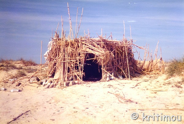 Selbst die Kinder meiner Wirtsfamilie machten sich einen Spaß daraus, mich zu necken. „Ti káneis?“ (Wie geht`s?), fragten sie mich jeden Tag, und ich hatte keinen blassen Schimmer, worum es ging. Ich konnte immer nur ganz hilflos „I don`t understand“ entgegnen, und die Kids kreischten vor Vergnügen: „donanderstän donanderstän donanderstÄÄÄÄÄÄN ……. “. Schmunzelnd in diese Gedanken vertieft trottete ich des Weges in Richtung Agios-Prokópios-Strand, an den sich der von Agia Anna und Pláka anschließt, nur durch den kleinen Fischerhafen voneinander getrennt. Tatsächlich waren alle Gebäude verwaist. Kleine Innenhöfe waren von Frühlingsblumen überwuchert. Der Winter hatte Spuren an den Gebäuden hinterlassen, ganz ungewohnt die Landschaft, so ganz ohne Menschen. Schließlich gelangte ich an "meinen" Strand. Was für ein irres Gefühl! Man hatte mir im Sommer erzählt, dass im Herbst alle Hütten abgerissen und die Bambusstangen verbrannt werden, damit sie bei Sturm nicht auf`s Meer treiben und den Fischern die Netze zerreißen. Und tatsächlich, der Strand war komplett leer. Stattdessen fand ich jedoch wertvolle Güter aus dem Meer. Jede Menge „Náxosaugen“, die im Sommer eher rar waren, weil alle auf der Jagd nach diesen Muschelhäuschendeckel waren. Auch Muscheln in Form von „Zähnen“, die mit den "Augen" durch Silberdraht verbunden zu kunstvollem Schmuck weiterverarbeitet wurden. Man konnte gut erkennen, dass die Winterküstenlinie des Meeres um etliche Meter höher verlief als die im Sommer. Und dann der Blick auf Páros. Einfach grandios. Schade, dass ich den Sonnenuntergang nicht würde anschauen können, sicherlich geriete ich danach in die Dunkelheit. Auf meinem Rückweg kletterte ich auf den kleinen Felsenhügel in der Bucht von Agia Anna, auf dem eine Kapelle steht. Und dort sah ich sie: Die vermutlich als einzige übrig gebliebene Bambushütte des Vorsommers, etwas versteckt in den Dünen! Mein Herz schlug Purzelbäume!! ![]() Wie sehr ich mich auf den kommenden Sommer freute, wenn meine befristete Stelle zu Ende war und ich ein paar Wochen Auszeit nehmen konnte. Letztendlich gefielen mir zwar die landschaftliche Schönheit des naxiotischen Frühlings und das beschauliche Treiben in der Chóra sehr gut. Auch der verwaiste Strand hinterließ eindrucksvolle Spuren. Doch was mich insbesondere hierher gezogen hatte, war die Erinnerung an das freie Leben, das wir hier im letzten Sommer geführt hatten, und das internationale Miteinander. Dieses zuckersüße Elixier, das ich unbedingt wieder kosten musste. Mit Freude im Herzen machte ich mich auf den Rückweg in die Stadt. Heute Abend war ich zu einem Fest eingeladen. |
