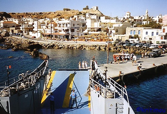 Die gegrillte sfakiotische Wurstspezialität wird mir im "Paralía" in Agía Rouméli in Spiralform und mit stoischer Gelassenheit serviert, zusammen mit Patátes. Dazu ein kleiner Salat. Als Abschiedsessen. Ich muss sagen: nicht schlecht. Bei der herrschenden Hitze bräuchte man einen Ratschí drauf, um das Fett schneller loszuwerden. Eine doch etwas reichhaltige Mahlzeit bei diesen Temperaturen. Um 16 Uhr legt die "Samariá" ab, mit mehr Passagieren an Bord, als ich erwartet hatte. Auf zu neuen Ufern! Erst einmal abwechslungsreiche Küsten entlangschippern. Dicht vorbei und herum um das hochragende Kap Kalotrivídi. Kiefernwälder entschwinden dem Auge, Fels macht sich breit. An seiner Westseite, unmittelbar zu Füßen des Kaps, ein ganz hübscher, nicht gerade kleiner Strand namens Domáta, mehrere hundert Meter erstreckt er sich, als landwärtige Begrenzung eine Steilstufe, nicht sehr hoch, aber sehr ausgeprägt, eine Art dicker Kiesbank, wenn man das aus einiger Entfernung und ohne Fernglas so sagen kann. In der hintersten Ecke, da, wo der E-4-Aufstieg aufs Kap beginnt, erkenne ich gerade noch einen zurückgelassenen Rucksack - offenbar ist da jemand auf Erkundungstour gegangen, sucht oder bereitet vielleicht irgendwo sein Nachtlager. Im Hintergrund eine echte Großfurche, eine immer wieder überraschend weite Talung, "Kládos-Schlucht" genannt. Ein richtiges Monstrum an Breite und optischem Eindruck. Der Verlauf des E-4 ist leider nicht erkennbar, nicht nachverfolgbar, schade. Kiefernwälder, da hinten. Ein relativ monotones, langes Hangstück folgt, es geht steil bergauf, bis zu den Gipfeln weiter landein. Der kleine Strand (Sendóni), der später sichtbar wird, mit ein oder zwei weißen Häuschen, grenzt bereits an die andere markante Schlucht, die von Tripití, im Vergleich zur Kládos-Schlucht von See aus absolut unscheinbar, eng wirkt sie - allerdings auch geheimnisvoll, für einen vorbeiziehenden Seefahrer. Westlich springt ein etwas ausgebauchter hoher Bergkegel ins Meer vor. Es ist das Kap Tripití, sein Gipfel der Profítis Ilías mit Kapelle. Eine Festung aus venezianischer Zeit mit türkischen Ausbauten ist da oben in Resten noch erhalten - seh ich aber nicht, vom Schiff aus. Ítalo hat mir erzählte, er lege auf diesem Kap immer eine Übernachtung ein, wenn er Wandergruppen von Ag. Rouméli nach Soúgia führe. Er zieht diese Richtung vor, von Ost nach West, das Schwierigste zuerst, alleine schon dieser Aufstieg von Ag. R. aus! Als Abstieg wäre er zum Schluss eine Tortur. Wieder ein kleiner Badestrand, kleine "Farángi" dahinter. Steile Hänge sind es, an diesem Küstenabschnitt. Bald ist eine kleine Kirche erkennbar, in Ufernähe. Wald am Hang, wieder eine Schlucht. Das letzte Stück vor Soúgia/ gesprochen: "Súja". Nicht ganz so steil wie zuvor geht es hier die Hänge hoch. Eine kurze Schilderung eines langen, anstrengenden Weges war das. Einige Leute sind auf der Strecke umgekommen, auf dem Teilstück hinter Tripití in Richtung Ag. Rouméli. Sind vom Weg abgekommen, in der Hitze herumgestiegen, haben ihre letzte Kraft aufgebraucht, sind schließlich verdurstet. Jetzt soll alles besser markiert sein. Etliche der gelb-schwarz geringelten Markierungsstangen sind wahrscheinlich schon wieder demoliert (?) - ich kenne den Weg aber nicht aus eigener Erfahrung. Nachdenken an die ausdrückliche Warnung des einen Paares in Lýkos/Líkkos: NICHT so problemlos, das Stück gleich hinter oder vor Agía R., aber nicht nur da, mehrere steile Geröllhänge, teils kaum erkennbare Pfade, man kriegt es mit der Angst zu tun - echt schwierig (!), meinten sie. ((Viele Leute haben den Weg auch bewältigt, geübte Bergwanderer, Langstreckengeher mit schwerem Gepäck.)) Was für eine ausgesprochen schöne Annäherung an Soúgia ist das wieder, dieses Mal! Von der Meerseite her erscheint mir der Ort wirklich jedes Mal viel hübscher und grüner als in seinem Zentrum selbst, wo er mich immer noch nicht so sehr begeistert. Ich weine vergangenen Zeiten, den älteren Leuten und ihrer Preisethik nach, der alten Maria mit ihren ein, zwei einfachen und doch so perfekt gelungenen Gerichten. Als ich einmal mit einem Walkman anrückte, wollte sie ihn mir abkaufen - sie wollte auf dem Stand der Zeit sein (- aha, dämmerte es mir, Soúgia öffnet sich mit aller Verve dem Fortschritt). Seit Jahren hat die Tochter übernommen und saniert, modernisiert. Das liebenswerte Alte ist kaputt, dauerhaft und auf abrupte, brutale Weise ausgelöscht. Aber wer das nicht kannte, liebt Sougia möglicherweise, beim ersten Eintreffen. Wenn nicht, vergleicht er/sie - und hasst es vielleicht recht bald. Ein durchaus ruhiges Örtchen dennoch, jetzt, nachdem sich Paleóchora noch dazu so verändert hat. Die Wiederkehrerinnenszene, die griechischen Boys warten schon auf die mitteleuropäischen Damen aus den österreichischen und bundesdeutschen Büros, die sich vierzehntägig erneuern. Auch nur eine Teil-Clientèle, der Rest sind ganz normale Leute, klar. Aber im Vergleich zur Stille und Nähe, auch anderen Mitreisenden gegenüber, von Loutró, oder Phönix oder Lýkos und natürlich auch der abendlichen oder morgendlichen Terrasse des "Stávris" in Chóra Sfakíon, ist Soúgia schon viel, VIEL, V I E L weiter entfernt, ein deutlicher Schritt zu mehr Anonymität oder auch Professionalität, wenn man so will. So hab ICH zumindest es halt mehrmals erlebt, andere haben vielleicht ganz unterschiedliche, gegensätzliche Eindrücke mitgenommen, und die mögen mir bitte verzeihen. Meine im früher üblichen Dreitagerhythmus (bei Zwei- oder Dreiwochenreisen [dann auch noch Plakiás, Agía Galíni, Mátala, Pitsídia], westliche Südküste plus Chaniá, Standardprogramm) zusammen mit mir weitergereisten neuen Bekanntschaften, Wanderfreunde, GesprächspartnerInnen aus der Sfakiá, etwa aus Loutró, haben sich in Soúgia zu meiner steten Enttäuschung im Lauf von spätestens zwei Tagen immer ganz eindeutig "vertrivialisiert", wenn ich 