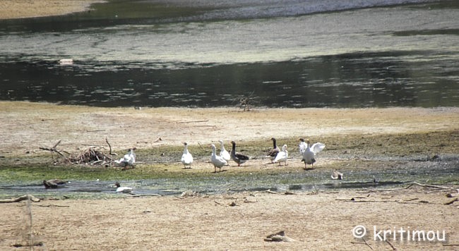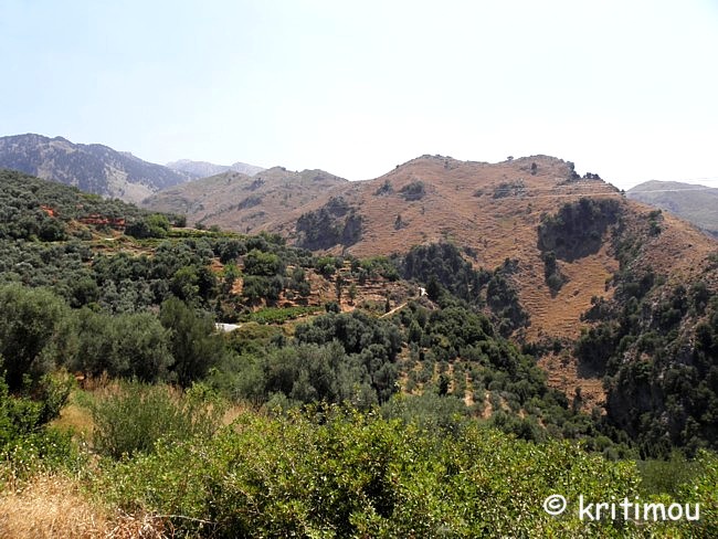 Ewig die Erinnerung an euch Brüder, die ihr für den ehrenhaften Kampf gefallen seid. Auch wir halten inne im Gedenken. Wenn man sich vor Augen hält, wie weit neofaschistische Tendenzen in Deutschland schon wieder fortgeschritten sind, dass es Parteien mit stramm rechtem Gedankengut gelungen ist, in die kommunalen Parlamente einzuziehen, dass in deutschen Städten eine rechtspopulistische Bewegung auf Stimmenfang geht und dabei zumindest kurzfristig recht erfolgreich ist, dass sich brutale Überfälle durch rechte Schläger auf Menschen häufen, die Schutz in Deutschland suchen, dass eben jene Nazibanden Mitglieder demokratischer Parteien und gewählte Volksvertreter bedrohen und zusammenschlagen, weil ihnen deren Meinung nicht passt, dann erscheint es uns als besonders erwähnenswert, dass wir uns alle an jene Vergangenheit erinnern sollten, die noch nicht einmal hundert Jahre her ist, und wie unvorstellbar viel Leid sie über Millionen von Menschen gebracht hat. Vielleicht würde es helfen, sich an einer dieser Gedenkstätten wie in Golgothá die Verantwortung zu vergegenwärtigen, die wir selbst heute haben, um festzustellen, wie kostbar Frieden und Freiheit sind. Auch wenn das Herz schwer ist, so verlassen wir diesen stillen Ort in Dankbarkeit darüber, dass es in den finstersten Zeiten Menschen gegeben hat, die sich nicht gebeugt haben und die bereit waren, ihr Leben für die Freiheit zu geben, nicht nur für ihre eigene. ![]() Sehr heiß ist uns, als wir wieder ins Auto steigen. Wie wir nach Fournés kommen, wissen wir immer noch nicht. Also folgen wir wieder der schmalen Landstraße, die uns nun zu einem ausgeschilderten See führt. Am Ufer biegt sich der langstielige Bambus, seine langen Blätter rauschen sanft in der heißen Brise. Ein Ort – ideal zum Chillen. In einem großen Café kehren wir ein und lassen uns auf der Terrasse nieder. Bei dem Stausee – oder besser, was davon noch übrig ist – handelt es ich um den See von Agiá, einem Trinkwasserspeicher von Chaniá. ![]() Hier kann man die Wasserknappheit, unter der weite Teile oder vielleicht sogar ganz Kreta in diesem Jahr zu leiden haben, erahnen, denn der See führt nur noch wenig Wasser. Selbst die Vögel hätten mittlerweile Probleme, erklärt der Wirt. Im Winter habe es viel zu wenig geregnet. Sorgenvolle Kommentare dieser Art werden wir im Laufe unseres Aufenthaltes auf der Insel noch häufiger hören. ![]() Schließlich erhalten wir noch eine Richtungsangabe, die uns erneut durch das Dorf Agiá den Weg nach Fournés und Mesklá weist. Wir durchqueren üppige Orangen- und Zitronenplantagen. Während die einen noch vom letzten Winter prall und überreif an den Bäumen leuchten, sind die anderen im Stadium der Reifung, grün und fest. Stetig bergan geht es hinter Fournés, wo sich die Wege trennen: einer führt nach Omalós, der andere nach Mesklá und weiter. Von Mesklá aus erkennt man auf dem grünen Nachbarhügel die charakteristische Dorflinie von Lákki. ![]() Laut unserer Anavási-Karte ist die Strecke Mesklá – Zoúrva – Thérisso als „malerisch“ ausgewiesen. Das ist weit untertrieben. Atemberaubend, abwechslungsreich, mit weiten Blicken über die majestätische Berglandschaft der Lefká Ori, der Weißen Berge, erleben wir die Strecke, als wir uns auf knapp 600 Meter Höhe hinaufkurbeln. Die abgeschiedenen Häuser beherbergen nur wenige Bewohner. Wäsche hängt direkt neben der schmalen Straße zum Trocknen. Alles erscheint sehr familiär, man ist unter sich. Viele Fremde kommen hier wahrscheinlich nicht entlang. Olivenbäume gibt es auch in dieser Höhe, oft an steilen Hängen. Straff gespannte Netze am Boden weisen schon auf die Vorbereitungen der nächsten Ernte hin.
