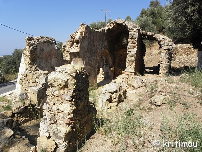 ![]() Am Nachbartisch sitzen unter einem Baum einige ältere Kreter und lassen es sich bei ein paar Tsipourákia gut gehen. Vielleicht wird heute Nachmittag kein Lied gedichtet, doch ihre gute Stimmung ist ansteckend. Maria, die Wirtin, ist nicht nur für ihre Kochkünste berühmt, sie verkauft auch Kräuter aus der Umgebung (mit Erlaubnisschein, der beim Stand liegt; mittlerweile ist es verboten, die Berge zu plündern und die Kräuter nach Gutdünken zu verscherbeln – auf Kreta hat man schlechte Erfahrung mit findigen Geschäftsleuten gemacht). Kennt ihr das auch, dass sich der Geschmacks- und Geruchssinn auf Kreta verändert? Salz, Pfeffer und pulverisierte Gewürze werden eher als fad wahrgenommen, egal, wieviel man davon ins Essen tut. Aber die starken kretischen Kräuter würzen so schmackhaft, dass man nur wenige davon benötigt. Überhaupt ist die Luft erfüllt von diesen Düften, und in den Bergen erst recht. Mehrere von Marias Kräuterpaketen aus der kretischen Bergwelt, wild gewachsen, selbst gepflückt, getrocknet, grob gebündelt und allesamt noch zu verlesen, wandern in unseren Besitz über: Oregano, Thymian, Thrýmba, Mantzurána, Bergtee und Kombóchorto. Ihr Aroma ist unbeschreiblich betörend und intensiv. Als wir schließlich weiterfahren, drehen wir nach ein paar hundert Metern wieder um, um noch ein paar Tüten Oregano mehr mitzunehmen. So schnell bekommen wir diese Qualität wahrscheinlich nicht mehr. Von Zoúrva nach Thérisso ist es nicht weit. Hinter dem Ort geht es wieder bergab. Die schmale Straße führt nun über mehrere Kilometer durch eine langgezogene, grüne Schlucht. Glatte, hohe Sandsteinfelsen erheben sich immer wieder rechts und links der schmalen Straße, begleitet vom ausgetrockneten Flusslauf, den wir ab und an überqueren. Im Boden ist jedoch noch ausreichend Feuchtigkeit gespeichert, wie man an den blühenden Oleandersträuchern erkennt. ![]() Die meisten Ziegen einer kleinen Herde liegen mitten auf der Straße. Sie erheben sich nur widerwillig, um uns durchzulassen. Ein Zicklein ist rege auf einen Baum gestiegen und hängt dort mit baumelnden Beinen im Geäst, um sich an den Blättern gütlich zu tun. An einer Stelle stoppen wir in einer kleinen Haltebucht. Nur die Zikaden geben ihr ohrenbetäubendes Nachmittagskonzert, ansonsten kommt niemand hier vorbei. Durch das Laub der Bäume brechen sich bereits die Strahlen der Nachmittagssonne. Alex besteht darauf, mindestens eine halbe Stunde hier zu verbringen, einfach so, der Romantik wegen. ![]() So langsam macht sich die Sehnsucht nach dem Meer wieder breit, wir lechzen nach einem weiteren erfrischenden Bad. Noch einmal halten wir bei Perivólia (Chaniá) zur Besichtigung einer verlassenen Ruine, die sich auf der rechten Straßenseite befindet. Es handelt sich um die Reste einer kleinen Kirche aus antiker Zeit.
