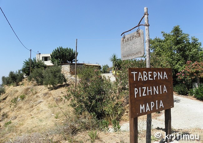 Zwischen Mesklá und Zoúrva steht exponiert auf einer Hügelspitze die Taverne Rizinia.