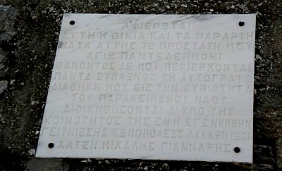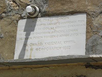 Es tut gut, an Orte zu kommen, auch nach so langer Zeit, an denen sich eher wenig oder auch nichts verändert hat, an denen man sich auf Altbewährtes beruft und daran festhält. Fortschrittsfetischisten, die Stillstand mit Rückschritt gleichsetzen, würden hier verzweifeln. Für mich ist es ein wunderbares Erlebnis, die Dinge so vorzufinden, wie sie immer waren. Ein Familienbetrieb, in dem zwar hart, professionell und erfolgreich gearbeitet wird, bei dem das Menschliche aber auch sichtbar wird, als ich erstaunt feststelle, dass Giórgos, der Wirt, sich nach all den Jahren tatsächlich lächelnd an mich erinnert und sich nach meinen damaligen Mitreisenden erkundigt. Nach dem frischen Salat mit leckeren, festen Tomaten und obercremigstem Myzíthra, möchten wir das Giannáris-Denkmal besichtigen, das nur wenige Gehminuten entfernt, auf einer kleinen Anhöhe, steht. ![]() Chatzí-Michális Giannáris, 1831 in Lákki geboren, 1916 in Máleme bei Chaniá gestorben, stammte aus einer Priesterfamilie. Zusammen mit seinem Vater und den Brüdern unternahm er eine Pilgerreise ins Gelobte Land - daher auch sein Beiname Χατζή (Chatzí). Auch in der jüdischen und islamischen Kultur gibt es diesen Ehrentitel. Jeder, der sich auf einen Hadsch begeben hat, also je nach Glaubensrichtung zu seinem heiligsten Ort (Jerusalem bzw. Mekka) gepilgert ist, darf anschließend den Ehrentitel Hadschi im Namen tragen. Giannáris war einer der großen kretischer Anführer im Freiheitskampf gegen die Osmanische Besatzung, dessen Name insbesondere mit dem kretischen Aufstand von 1866 verknüpft ist. Obwohl er mehrfach verfolgt und gefangen genommen wurde, gelang es ihm jedes Mal zu entkommen. Bei einer dieser Inhaftierungen schworen sich siebzehn seiner lakkiotischen Mitstreiter, dass sie – falls er aus dem Gefängnis gerettet würde – ihm zu Ehren eine Kirche errichten würden. Dieser Schwur hängt in Stein gemeißelt über dem Eingang der verschlossenen Kapelle auf dem Gelände des Denkmals und trägt das Datum vom 16. Februar 1862.