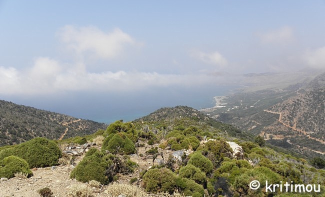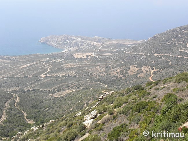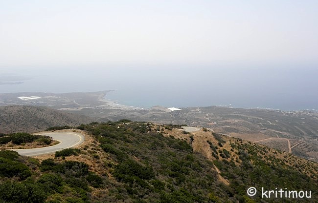 Noch sind wir ein wenig gefangen von der Besichtigung Falássarnas und ahnen daher nicht, dass wir bald eine der - nach unserem Geschmack - schönsten Strecken Kretas befahren werden. Eine überraschende Neuentdeckung. Milchig erscheint die weite Bucht von Falássarna im Gegenlicht, als wir letzte Blicke auf den sandigen Streifen werfen, der sanft ins türkisfarbene Wasser gleitet. Weg von der Wasserkante kehren wir zunächst zurück ins nahe gelegene Plátanos und nehmen von hier den Abzweig gen Süden, über die Landstraße (επαρχιακή οδός) Kastélli – Kefáli, zunächst in Richtung Sfinári. Die Westküste Kretas ist im Gegensatz zu den flachen Sandstränden des Nordens von steilen, hohen Berghängen begrenzt, sodass es keine durchgehende Küstenstraße von Nord nach Süd gibt. Vielmehr fahren wir hinein ins kretische Hügel- und Bergland. Auch hier säumen zunächst verdorrte Olivenfelder die schmale, kaum befahrene Straße. Immer höher hinauf winden wir uns, durchqueren baum- und schattenlose Hänge mit niederen Sträuchern und mattgrünen, stacheligen Kugeln. Ein paar Ziegen suchen nach Fressbarem; wenn es nichts anderes gibt, verschmähen sie auch trockenes Blattwerk nicht. ![]() Dann wiederum geht‘s hinab in ein Tal, das zwei Berghänge voneinander trennt. Nur hier, entlang der Bachläufe, grünt es. Wasser scheint also unterirdisch noch vorhanden zu sein. Im Zickzack erklimmen wir den nächsten Bergrücken. Bienenstöcke stehen ab und an in Sichtweite. Doch was gibt es hier, auf den kargen Hügeln, zu schlecken? Es wird schon einiges an leckerem Nektar zu finden sein, nicht ohne Grund heißt ein Weiler ganz in der Nähe Melissía (Μελισσία – Bienenvölker). Eine erbarmungslose Sonne sticht herab, Lebensspender und Brennofen zugleich. Neben der Straße ein völlig verbrannter Hang; nur die Kapelle konnte man retten. Immer wieder das gleiche Trauerspiel bei Wind und Hitze. An den Küsten werden heute die Temperaturen gepaart mit der hereinziehenden Luftfeuchtigkeit jede Bewegung unerträglich machen. Selbst in den Bergen, in einigen hundert Metern Höhe, empfindet man noch die schwüle Hitze. Auf halber Höhe schaut man in die Ebenen und kleinen Buchten, auf das fast wellenlose Meer und auf die umgebenden Hügel. ![]() Hier wird das Herz weit, weil dir Kreta etwas von seiner Seele zeigt: ein Kunstwerk aus den unterschiedlichsten pastellfarbenen Grau-, Beige- und Grüntönen, mit der die stille Berglandschaft gemalt wurde, und gleichzeitig das Meer so nah.
