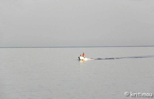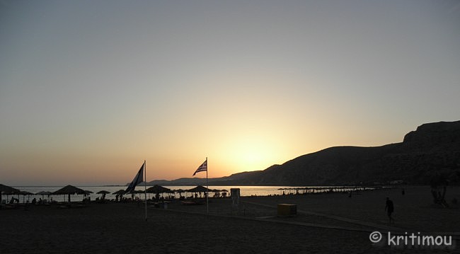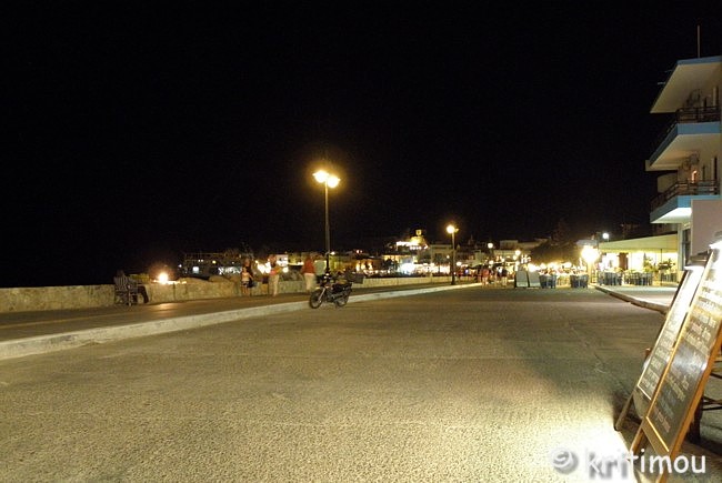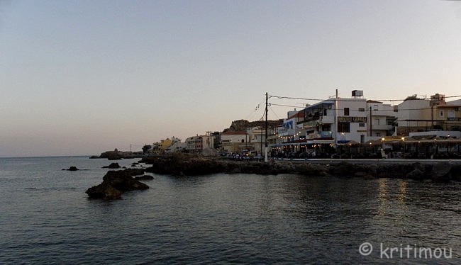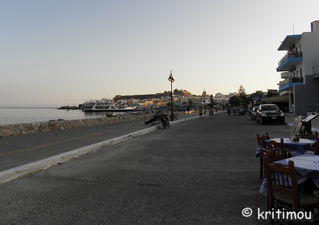 ![]() Wir durchqueren Aligí, dann Dris („Eiche“). Dicke Feigenbüsche, Obst- und Zierbäume sind an der Ortsdurchgangsstraße gepflanzt. Kurz vor Plemenianá gelangen wir zu einem Idyll: die direkt an der Straße, neben einem Bach gelegene Taverne „O Milos“, eine ehemalige Mühle, die selbst gefangene Aale als Spezialität anbietet. Schattenspendende Bäume, Wasserplätschern, eine ruhige Stimmung – genau das, was man für einen Zwischenstopp braucht. ![]() Direkt hinter dem Flecken biegen wir schließlich unterhalb von Kándanos ab auf die Nord-Süd-Achse, die Verbindung zwischen Tavronítis an der Nordküste und Paleóchora im Südwesten Kretas, wo man mit wesentlich höherer Geschwindigkeit daher fährt. Nur noch wenige Kilometer sind es bis zum Ziel. Einige Ortsnamen bringen uns unterwegs noch zum Grübeln, wie zum Beispiel Kakodíki. Ist hier so viel „Unrecht“ gesprochen worden, oder hatten die Einwohner möglicherweise absonderliche Rechtsvorstellungen, dass man dem Ort diesen Namen gegeben hat? Der Fantasie sind keine Grenzen gesetzt. Wir brettern wie die anderen Verkehrsteilnehmer über die breite, mit weitausholenden Kurven versehene, gut zu befahrene Landstraße. Durch einen kleinen V-Ausschnitt sehen wir endlich das Meer. In windstiller Gluthitze fahren wir am späten Nachmittag durch eine prächtige Eukalyptusallee hinein nach Paleóchora. ![]() Unser Ziel ist zwar erreicht, eine Unterkunft haben wir allerdings nicht vorgebucht. Zur Orientierung fahren wir einfach hinein in den Ort, der auf einer Halbinsel zwischen dem sandigen West- und einem steinigen Oststrand liegt. Die Parallelstraßen zum Sandstrand sind voller Unterkünfte, man bräuchte nur irgendwo anzuhalten und zu fragen. Doch weiter rollen wir, umrunden die Spitze der Halbinsel, gelangen zum kleinen Hafen und biegen auf die Promenade der Ostseite ein. Hier reiht sich Taverne an Taverne, und alle bieten auch Unterkünfte an. Weiter hinten haben wir Glück. Wir können ein Zimmer mit entgegengesetztem Blick zum Meer haben. Das wollen wir eigentlich nicht, obwohl es ganz niedlich ist. Doch wir erhalten den Zuschlag inklusive Rabatt auf eines der vorderen Zimmer, wenn wir zwei Tage warten, denn dann wird es frei. Da wir noch zehn Tage Urlaub haben, sagen wir zu. Wie sich später herausstellt, als der abendliche Run auf die Tavernen und Kinderparadiese stattfindet, haben wir mit der Unterkunft weiter hinten tatsächlich eine gute Wahl getroffen. Die Farbe des Meeres zu dieser fortgeschrittenen Stunde, eine sanft-blaue Glätte unter einem hellgrauen, diesigen Himmel und die Ruhe an dieser Stelle des Dorfes begeistern uns sehr. ![]() Am Abend schlendern wir die Promenade des mit dicken Gesteinsbrocken befestigten Gestades entlang. Zunächst erkunden wir den am oberen Ende gelegenen Strand. Was den Weststrand ausmacht, nämlich eine ausgedehnte Sandfläche, hat der Oststrand nicht zu bieten. Auf dicken Gesteinsbrocken stehen hier die Sonnenstühle, doch das kristallklare Wasser lockt die Besucher genauso zur Erfrischung. ![]() Anschließend promenieren wir langsam in Richtung Hafen. Unser Vermieter erzählt uns später, dass in den 1980ern mit dem Erwachen des Tourismus hier noch eine alte Ölmühle stand. Das Ufer war unbefestigt, und das Wasser schlug im Winter bis hoch zum Gebäude. Heute reiht sich Haus an Haus. ![]() Diese Tavernenmeile wird im Sommer abends bis tief in die Nacht hinein gesperrt, sodass die Lokale sich nach außen hin verbreitern können. Tolle Idee, ohne Autoverkehr hier sitzen zu können und den dicken Fischen zuzuschauen, wie sie aus dem Wasser springen. Als wir am Hafen ankommen, sendet die Sonne ihre letzten Strahlen herüber. Die Samaria I, mit der die letzten Schluchtenwanderer aus Agia Rouméli zurückgekommen sind, hat schon längst für die Nacht festgemacht.