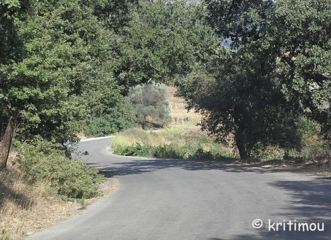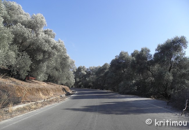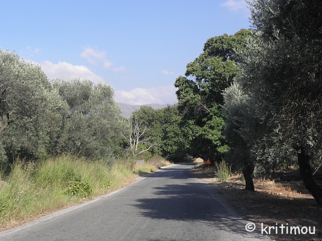![]() Noch ein kurze Strecke geradeaus, und dann geht es rechts weiter über eine schmale Stichstraße zur breiten Hauptstraße. Bis dorthin wird uns diese wunderschöne, wasserreiche Gegend weiterhin begleiten. Die Hügel quellen förmlich über von Olivenbäumen. Eine schmale Brücke führt über einen Bachlauf, Riesenplatanen und Kastanien säumen die Straße. Strovlés mutet, so wie die Dörfer zuvor, durch den reichen Baumbestand schattig und kühl an. Hinter dem Ortsausgang geht es wieder hinauf ins vom milden Nachmittagslicht durchflutete Olivenland.