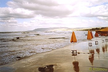 Aus vollem Berufsstress und keiner Sekunde Schlaf bin ich in Iráklion gelandet und gleich weiter mit dem Stadtbus zum Standardpreis von 65 Cent zur Platía Eleftherías gefahren, zu Fuß die paar Meter zur Bushaltestelle und mit einem klimatisierten, bequemen, neuen Bus auf nach Georgioúpolis, das von hohen Wellen und üblen Gerüchen umspült wird.