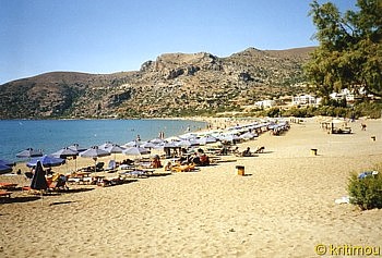 Auf der anderen Seite hat man immer ganz klar den Weg zur Kallérgiehütte im Blick, so dass man abschätzen kann, auf welcher Höhe man sich ungefähr befindet. Auch der Páchnes, von dem man auf Omalós nur die Gipfelspitze sieht, rückt immer mehr ins Blickfeld. Das sind wirkliche Wunder. Hier oben verlieren die Sorgen an Bedeutung und das Herz wird weit an diesem Morgen. Ich steige bis zum Sattel und schaue unvermittelt auf die Südküste, erkenne mit Erstaunen die unterschiedlichen Wettergebilde: Im Norden eine dicke hohe Wolkenwand, die der kräftige Nordwind in die Berge treibt, im Süden klare Sicht und ein ruhiges knallblaues Meer. Bis zum Gíngilos möchte ich nun nicht mehr gehen, genieße jedoch beim Abstieg die unendliche Schönheit der umgebenden Bergwelt, so erhebend und befreiend. Diese Wanderung war ein wirkliches Highlight, man muss ja glücklicherweise nicht immer bin ganz nach oben steigen, um zu genießen. Nach einem netten Abend in der Hoteltaverne und einer zweiten guten Nacht bringt mich der Bus morgens wieder nach Chaniá, wo schon bald die Abfahrt Richtung Paleóchora ansteht. Auf mein dahingeschmettertes „Jássas“ beim Einstieg in den Bus bietet mir eine Kreterin gleich den Platz neben sich an. Sie hat ihre erwachsenen Kinder in Iráklion besucht und befindet sich nun auf der langen Heimfahrt. Wir sitzen direkt hinter dem Fahrer mit wunderbarem Panoramablick. Nun habe ich in meiner Sitznachbarin eine gute Reisebegleitung gefunden, die mir alles Sehenswerte unterwegs beschreibt, mich auf Kapellen und Kirchen aufmerksam macht. Als ich das Schild nach Máleme sehe, denke ich an eine leidenschaftlich geführte Diskussion in einem Internet-Forum. Werde prompt gefragt, ob ich schon mal da war. Nicht? Ich sollte mal hinfahren, meint sie. Der Krieg wäre lange vorbei, jetzt wären wir alle Freunde. Meinem ganz zarten Einwurf, dass man doch in bestimmten Dörfern vielleicht nicht ganz so denke, stimmt sie zu. Auf unserem weiteren Weg macht sie mich auf die Kriegsdenkmäler aufmerksam. (Erst als wir aus dem Bus aussteigen, zupft sie mich noch mal am Ärmel und meint, auch aus ihrer Familie wären von den deutschen Besatzern während des zweiten Weltkrieges zwei Angehörige umgebracht worden.) Unser Bus fährt durch viele Touristenresorts bis nach Kíssamos. Hier biegen wir nach Süden ab, gelangen durch überraschend üppige Kastanienhaine schließlich nach Paleóchora. Es ist heiß. Meine Suche nach dem „Oriental Bay“ dauert nicht lange, und ich bin sehr zufrieden. Eine nette Vermieterin, die in der Nähe auch ein Café betreibt, in dem man lecker frühstücken kann. Die Unterkunft selbst mit direkt angrenzender Taverne. Mhhhhmmm, ein leckeres Briám kommt gerade richtig. Meine Ortsbesichtigung führt mich aufgrund der Hitze erst mal ins „Almyrída“, wo ich auf einer kleinen, gemütlichen Terrasse einen eisgekühlten Frappé schlürfe.