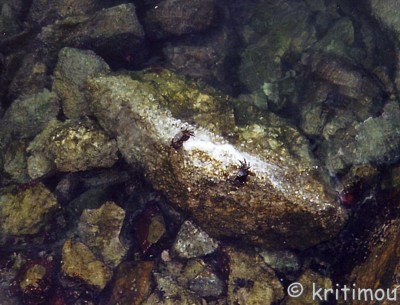 Wir schlendern weiter durch den Hafen, bewundern weitere coole, teure Boote, träumen mit den größeren Fischerkuttern, atmen Seeluft ein. Das Wasser ist überall sehr sauber. Unzählige Krebschen krabbeln unter der Wasseroberfläche auf den Steinen und an den Ufermauern entlang.