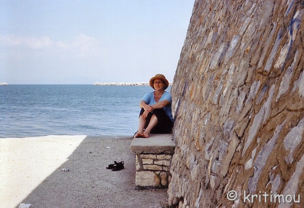 Tatsächlich kommt um viertel vor neun der Bus. "Camping!", "Thérma!" schreit einer herum, es handelt sich also unmissverständlich um unseren Bus. Fast ausschließlich Freaks steigen ein, bin einigermaßen überrascht, denn das habe ich schon lange nicht mehr erlebt. Erinnert mich ein bißchen an damals........, bis ein Handy klingelt. Nee, Handys hatten wir keine. Gute 20 Minuten sind wir auf einer Küstenstraße unterwegs, als der Bus abbiegt und die paar hundert Meter bis zu unserem Zielort zurücklegt. Mitten in einer Menschenmenge wird angehalten, nur wenige Fahrgäste steigen aus. Aha, der Rest fährt also weiter zum Campingplatz am Meer. Irgendwie erschlägt mich das Chaos gerade ein wenig. Überall Hippies, zumindest von der Optik her. Dazwischen Motorradfahrer oder auch solche, die versuchen, ihre Autos durch die Menge zu karren. Jongleure üben ihre Kunst und etliche Schmuck- und Saftverkäufer haben ihre Stände rechts und links der Straße aufgebaut. Eine schlichte Beleuchtung lädt zum Anschauen und Kaufen ein. Sehr viele Gäste bevölkern außerdem ein Lokal, das im Halbdunkel liegt. Laute Musik beschallt die Peripherie des großen, voll besetzten Cafés, das schon seit vielen Jahren traditionell Alt-, Jung- und Wochenendhippies anzieht. Im Café selbst sitzt man unter uralten Bäumen so ziemlich im Dunkeln. Hier bereits beginnt der Platanenwald, den ich aber bei diesem Licht nicht so recht wahrnehme. Schräg gegenüber steht der frühere Kiosk, der sich zu einem Andenken-Postkarten-Laden entwickelt hat. Erneut erkennen wir, dass wir viel zuviel Gepäck mit uns herumschleppen. Ganz umständlich schleppen wir den Kram durch die gesamte Kneipe bis ganz nach hinten, wo wir noch einen freien Tisch ergattern. Wie unpassend, mit einem spießigen Trolley zu reisen! Viele Männer mit langen Haaren, die kunstvoll mit Tüchern hochgebunden oder zu Rastazöpfen gedreht wurden, und schlanke, braungebrannte und schöne Frauen, beide teilweise in oberlegeren Designerklamotten im Hippie-Look, beherrschen auf den ersten Blick um diese Uhrzeit die Szene. Am Morgen ist auch noch anderes Publikum unterwegs. Hier braucht man allerdings ein gut gefülltes Portemonnaie, denn eine kleine Flasche Amstel oder ein Frappé kosten je 2,50 €, ein stolzer Preis. In dieser Situation ist das jedoch ziemlich unerheblich, denn wir haben immer noch kein Zimmer. Während ich auf das Gepäck achte, wird die Lage für eine Unterkunft sondiert. Ich sitze da, und warte...... Zimmersuche, Teil I Um diese Jahreszeit und gerade um den 15. August herum ist es sehr schwer, ohne Vorbestellung ein Zimmer zu bekommen. Wir hatten – wie auch so manch anderer – nicht vorbestellt. Immer wieder hört man: Alles besetzt, kommt morgen, übermorgen, in einer Woche wieder. Daher entscheiden wir uns kurzfristig für das Angebot einer älteren Zimmervermieterin, diese eine Nacht in ihrer Küche zu verbringen. Na ja, was soll`s, selber Schuld. Immerhin soll tags drauf ein Zimmer frei werden, das wir dann beziehen können. Und so ziehen wir zu später Stunde in diese Küche ein, nächtigen teilweise auf einem Sofa, teilweise auf dem Boden. Unser Gepäck wird unter dem Tisch verstaut, uns stehen Gemeinschaftstoilette und –dusche zur Verfügung. Später schlendern wir noch ein wenig durch das Dorf. Ein Lebensmittelgeschäft, - hier gibt man sich förmlich die Klinke in die Hand – bietet so ziemlich alles, was man braucht. Es gibt auch einen Bäcker mit angeschlossenem Café, in dem sehr köstliche Preziosen hergestellt werden. Selbst eine Fleischerei befindet sich am Ort. Zahlreiche Tavernen laden ein, etliche liegen am Ortsausgang in Richtung Wáthres, einer der Besonderheiten dieses Ortes. Doch die schauen wir uns erst am nächsten Tag an. Irgendwann begeben auch wir uns nach dem langen Tag zur Ruhe und schlafen mit vielen Unterbrechungen ein. |