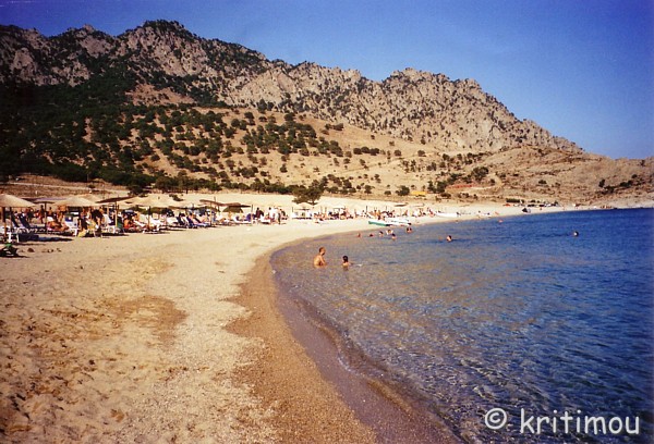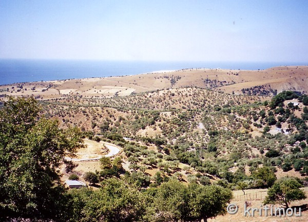 Heute Morgen sind wir schon zeitig auf. In Profítis Ilías, dem Bergdorf, bekannt für sein leckeres Ziegenfleisch, möchten wir gerne einkehren und die Aussicht genießen, und dann weiter zum Strand von Pachía Ammos, dem „fetten Sand“, düsen. Auch vom Besuch der Dörfchen unterwegs versprechen wir uns ein paar nette Inseleindrücke. Unser Frühstück fällt nicht ganz so ausgedehnt aus wie sonst, statt dessen packen wir unsere Untensilien, damit wir bald loskommen. Das Riesenhandtuch und die Flossen sind schon auf den Gepäckträger geschnallt, noch den Rucksack umgehängt, die Helme auf und los geht die Fahrt, wie gehabt: Aufsitzen, anrollen, "Achtung!", Gang reinhauen. An der Kreuzung am Hafen von Thérma biegen wir nach links ab und genießen die Fahrt auf der Küstenstraße. Vorbei an Kariótes zieht sich der Weg knapp 15 Kilometer bis nach Kamariótissa. Hier erledigen wir noch ein paar Kleinigkeiten. Unter anderem kaufen wir unsere Fährentickets, denn in zwei Tagen müssen wir schon wieder aufs Festland, wenn wir nicht völlig abgehetzt in Thessaloníki zu unserem Rückflug ankommen wollen. Besser ist besser, denn der Besucheransturm zum Panagiá-Fest am 15. August war sehr üppig, vielleicht wären die Plätze auf der Fähre bei einer kurzfristigern Buchung sonst ausverkauft. Auf dem Weg nach Chóra füllen wir den Tank bis zum Rand, man weiß ja nie, wo man noch landen wird. Hinter Chóra biegen wir links ab und gelangen über eine Betonpiste in einen dichten Kiefernwald. Zunächst jedoch müssen wir eine Steigung überwinden, bei der unser Papáki müde lächelnd abwinkt. Ich steige ab und gehe die paar Meter nach oben zu Fuß, nur um festzustellen, dass die Abfahrt genau so steil nach unten führen wird. Irgendwie wird uns da doch ein wenig bang, so dass wir beschließen, wieder umzukehren, und mal lieber nach dem Weg zu fragen. Wir vermuten nämlich, dass wir ganz falsch abgebogen sind. Tatsache, unser erster Versuch brachte uns tatsächlich nicht auf den Weg nach Profítis Ilías. Es gibt dort gleich hinter Chóra mehrere Abzweigungen, wir sollen einfach nur die mittlere nehmen. Diese führt nach Alónia, das wir, ohne anzuhalten, durchfahren. Für uns gibt es da nichts zu schauen, man lebt halt dort. Ich habe in solchen vom Tourismus recht unbeleckten Dörfern immer das Gefühl, in die Privatsphäre der Bewohner einzudringen, wenn ich die Straße entlanggehe und in die Höfe gaffe. Langsam und stetig windet sich die Straße nach oben. Ausgedehnte Olivenfelder überraschen das Auge, silbrig-grün flirrende Bäume, ein Landschaftsbild, das mir von Kreta so vertraut ist. Ausblicke auf das tiefblaue Meer lassen den Blick in die Ferne schweifen. ![]() Unser Papáki müht sich brav durch die zahlreichen Kurven bergan. Ab und zu halten wir an, genießen die Sicht und gönnen dem Moped eine Pause. Wir haben Zeit und Geduld. Kurz vor Profítis Ilías gibt es noch ein paar steilere Rampen, die ich dann mal lieber zu Fuß erklimme, weil das Moped diese Steigungen nicht mag. Doch bald erreichen wir in heißer Mittagssonne unser erstes Ziel, das in luftiger Höhe und in wasserreicher Gegend liegt. Profítis Ilías war uns von unseren neuen Zimmernachbarn in Thérma empfohlen worden, einem Tscherkessen mit seiner griechischen Frau, die in Stuttgart (wie könnte es anders sein) gearbeitet haben und jetzt in Athen leben, und die uns einfach gut leiden können, immer wieder das Gespräch mit uns suchen. Ein kühles Getränk täte jetzt gut, obwohl wir schon an der Durchgangsstraße, unterhalb einer Ausflugstaverne, erfrischendes Wasser aus einem öffentlichen Kranen gezapft haben. Während wir die Treppe zu dieser Taverne erklimmen, schießt mir ein Gedanke an frischen Tsatsiki mit Brot durch den Kopf. Der mittlerweile obligatorische Gurken-Tomaten-Salat darf auch nicht fehlen. Oh Sünde – da senden zwei Ziegen ihren Duft vom Grill über die Terrasse zu uns herüber. Sie sind jetzt gerade gar geworden, schön knusprig außen. Fast alle Ziegen laufen auf Samothraki frei herum und fressen die leckersten Kräuter. Genau das gibt dem Fleisch die Würze, daher ist Ziege auf Samothráki eine absolute Delikatesse, und Profítis Ilías ist das Delikatessenzentrum. Wie zum Beweis lauschen wir ungewollt dem Handytelefonat einer Frau: „Wie es mir geht? – Guuut! Ich habe 5 Kilo zugenommen, ich esse jeden Tag Ziege!“ Gelächter ... ![]() Bald fangen wir an zu sabbern, so verführerisch duftet das Fleisch. Was können wir tun? Wir bestellen eine Portion und werden gefragt, wie viele Kilos es denn sein sollen, ernten verständnislose Blicke, als wir mit „Grammária“ (Gramm) ankommen. Letztendlich wird es eine deftige Portion für zwei Personen. Das Fleisch fällt förmlich vom Knochen, die Kruste schmeckt pikant nach Kräutern. Wir putzen die Platten innerhalb kurzer Zeit komplett leer, erhalten dann als Nachtisch frische, kühle, saftige Karpoúsi. Ein Frappé rundet das Gaumenhighlight ab. So gestärkt erkunden wir nach einer kleinen Verschnaufpause den Ort, suchen die Kirche mit dem Namen des Propheten Elias. Die Kapelle beim Friedhof, mit der Ikone des Agios Ilías, steht exponiert auf einem kleinen Vorsprung und bietet einen überwältigenden Blick bis weit über das Meer. ![]() In einer Taverne unterhalb des Hügels ist eine griechische Reisegesellschaft gerade im Aufbruch begriffen. Thrakische Musik erfüllt den Außenraum der Taverne, wo Essenreste von einem üppigen Mahl zeugen. Ich wette, es gab Ziege! Vereinzelt wird auf dem Betonfußboden getanzt, die prächtige Stimmung wirkt ansteckend. Einige winken uns zu, tanzen noch ein bisschen, bevor sie in den Reisebus steigen. Nach unserer Dorfbesichtigung möchten wir nun endgültig zum Strand, denn die Temperaturen quälen sich an die 40-Grad-Marke heran. Ein abenteuerliches Unterfangen nimmt seinen Lauf. In Lákoma biegen wir nach links ab. Bergauf und bergab fahren wir. Mit fortschreitender Zeit bin ich überzeugt davon, dass 