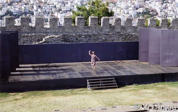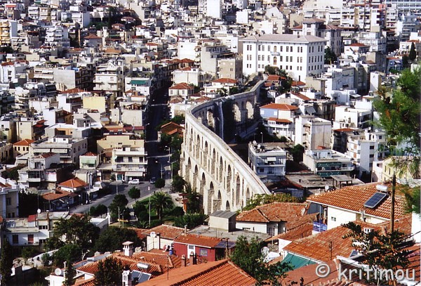 Doch vor einer weiteren Erkundungstour möchten wir uns erst einmal im Café ausruhen. Keiner weit und breit zu sehen. Und so bedienen wir uns am Kühlschrank mit kühlen Getränken und einem erfrischenden Eis. Bezahlt wird beim Kioskwärter. Das Café befindet sich am höchsten Punkt der Anlage und erlaubt den Blick über eine kleine Wiese, die von den Burgzinnen eingefasst ist und auf der außerdem eine Bühne aufgebaut wurde. Offensichtlich finden hier kulturelle Veranstaltungen statt. Was immer hier aufgeführt wird, beschert dem Besucher noch den zusätzlichen Genuss, am Abend hoch über Kavála sitzend, die Lichter der Stadt jenseits der Burgmauer zu sehen. Von unserem Café-Platz aus genießen auch wir es, über einen großen Teil der Stadt schauen zu können, einfach wunderschön, ein Augenschmaus diese bauliche Komposition. Wir sind glücklich, hier zu sein. Bald schon fliegen die Gedanken davon... Die Bühne interessiert mich jetzt doch sehr, bin gespannt, wie die Optik aus der Sicht einer Akteuerin ist. ![]() Nach einer Weile wagen wir einen kleinen Rundgang auf der Stadtmauer, zunächst nur hier im Areal des Cafés. Weitere atemberaubende Blicke auf die Stadt mit dem recht neu restaurierten, zweistöckigen Aquädukt, den mittelalterlichen „Kamáres“ (Arkaden), aus osmanischer Zeit. ![]() Über die mächtige Leitung gelangte das Wasser in die Stadt, für das Volk. Die Herrschenden hatten im Innenhof des Kastros eine eigene Zisterne, was ihnen ein hohes Maß an Unabhängigkeit bot, wenn man an mögliche Belagerungen dachte. Weniger spektakulär sind das ehemalige Nahrungsmittellager aus dem Jahr 1530, das im 18. Jahrhundert zu einem Gefängnis umfunktioniert wurde und auch sonstige bauliche Überreste, die sich in einem weiten Karree neben dem Café befinden. Am späten Nachmittag steigen wir bei geringfügig moderateren Temperaturen wieder hügelabwärts. Das Aquädukt möchten wir uns aus der Nähe ansehen. Die kleinen Gässchen auf dieser Seite des Hügels verströmen einen ganz eigenen Charme, viele Ruinen gibt es auch hier, längst ist noch nicht alles instandgesetzt. Die alte Wasserleitung wirkt von unten genau so gigantisch, wie sie - von oben gesehen - einen Teil der Stadt majestätisch durchschneidet. Aus dem Kastroviertel mittlerweile herausgekommen müssen wir schon wieder rasten und beschließen unsere Erkundungstour am einzigen Tisch vor einem Souvlaki-Grill mit Blick auf eine ganz andere architektonische Epoche. ![]() Zum Abschluss gibt es also doch noch eine dieser oberleckeren Souvlaki-Pommes-Tsatsiki-Tomaten-Pites. Hmmmmmm. Dazu ein eisgekühltes Amstel. Die Grillbude steht an der Kreuzung dreier Straßen, entsprechend viel ist jetzt am frühen Abend los, da alle wieder so langsam aus ihren Häusern geschlichen kommen. Rote Taxen passieren unseren Tisch. Unser Wirt, ein albanischer Landsmann, scheint allseits bekannt und beliebt zu sein. Er wird von der Straße aus im Vorbeifahren nett gegrüßt, andere kommen auf einen Schwatz vorbei. Wir kommen ein wenig ins Gespräch. So nutzen wir die Gelegenheit, ihn zu fragen, was er über die Bevölkerungsgruppe der „Arvaniten“ weiß. Er klärt uns darüber auf, dass diese ursprünglich Hirtennomaden waren. Die in Griechenland lebenden Arvaniten seien sesshaft. Sie haben aus dem Albanischen heraus eine eigene Sprache entwickelt, die jedoch mit dem heutigen Albanisch nichts mehr gemein hat. Die harte Arbeit hat dem Wirt einen bescheidenen Wohlstand beschert. Er besitzt – neben seinem Grill – ein eigenes Auto und hat sich ein Haus gekauft, in dem er mit seiner vierköpfigen Familie lebt. Allerdings findet er es hart, immer wieder um seine Aufenthaltserlaubnis zu kämpfen, die ihn nach seinen Aussagen jedes Jahr 300 € pro Kopf kostet. Eine Romafrau kommt vorbei und schwatzt ein wenig mit ihm. Hoch erhobenen Hauptes mit klirrenden Goldreifen und einem ganz fein gearbeiteten, riesigen Goldring am Finger schreitet sie bald wieder weiter. Ach, wie schön es hier ist, mitten in dieser Lebendigkeit! Auf dem Weg zurück ins Hotel möchte ich mir gerne noch einmal das Rathaus (Dimarchío) anschauen. Unterwegs kommen wir jedoch noch an einem anderen imposanten Gebäude vorbei. ![]() Es handelt sich um das ehemalige Tabakzentrum, in dem die Tabakblätter gelagert, verarbeitet und die fertigen Produkte gehandelt wurden. Davor gibt es ein Mahnmal für die Tabakarbeiter, die während der Aufstände gegen Unterbezahlung und schlechte Arbeitsbedingungen hier umgekommen sind. Ihre Namen sind in Stein gemeißelt. Das Gebäude ist geöffnet. Die Innenräume sind gepflastert, Decke und Treppen komplett aus Holz. In den Boden eingelassen sind zwei Brunnenschächte mit Wasser, heute mit durchsichtigen Plexiglasscheiben abgedeckt und von unten beleuchtet, die früher einem einheitlichen Raumklima dienten, um die Tabakblätter angemessen feucht zu halten, damit sie bei der Verarbeitung nicht brachen. Anlässlich des 50jährigen Jubiläums des Festivals im nicht weit von Kavála entfernten Theater von Philippi, das zur Zeit stattfindet, hat man in den Räumen eine Ausstellung installiert, die der Geschichte des Festivals gewidmet ist. Erstmalig habe man die Kostüme, Plakate, Fotos und weitere Erinnerungsstücke aus den verschiedenen Jahren zusammengetragen, wie wir am Eingang bereitwillig aufklärt werden. Die Geschichte des Festivals sowie ein Programmheft zum diesjährigen Jubiläum, beide auf Griechisch, können wir mitnehmen. ![]() ![]() Nach dieser weiteren interessanten Entdeckung haben wir die Richtung zum Dimarchío verloren und fragen die beiden Männer, die uns gerade passieren, nach dem Weg. Einer von ihnen nimmt uns am Ärmel mit bis zur nächsten Straßenkreuzung, deutet mit ausholender Armbewegung nach unten, dass wir DORT hinunter müssen. Seine verbalen Defizite (er ist kein Grieche) gleicht er durch eine eindeutige Geste aus, indem er den rechten Arm immer wieder dermaßen nach vorne schleudert, dass sein gesamter K