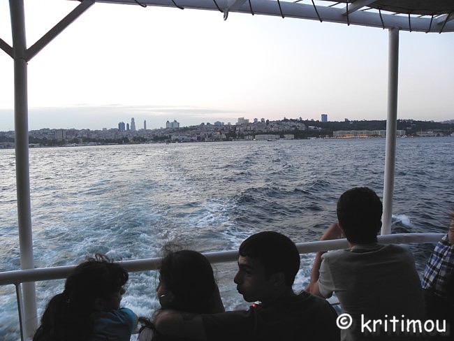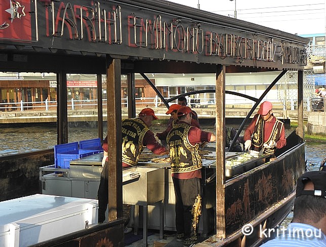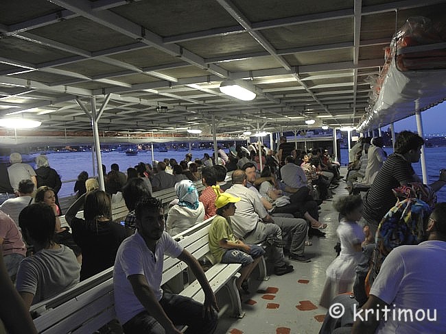 Unzählige Taxen säumen die Straßen. ![]() Auf einer Seite des Platzes entdecken wir eine Unterführung, die unter der mehrspurigen Straße augenscheinlich direkt zum Ufer des Goldenen Horns führt. In dieser Unterführung steppt der Bär. Auf jedem Quadratmillimeter wird gehandelt. Mit Billigware, wie Pumpguns aus Plastik für die Kleinen, aber auch Schuhen und Männerhemden. Hier wird mit allem, was irgendwie Krach macht, Aufmerksamkeit erregt. Ohrenbetäubende Musik vom Band aus allen Läden und Verkaufsständen, ratterndes Kinderspielzeug, schrilles Hupen, Kreischen. Man klatscht in die Hände, läuft herum und schreit. Nur wer auf sich aufmerksam macht, kommt weiter! Am Treppenaufgang sitzt eine Frau, die Selbstgestricktes verkauft. Sie ist ganz ruhig, blickt verschämt nach unten. Auch Kinder versuchen, irgendetwas zu verkaufen, manchmal eine Tüte Süßigkeiten; andere aber haben nur eine Packung Papiertaschentücher, die sie dir mit großen Augen entgegenhalten. Ein Mann sitzt da, eine Personenwaage vor sich. Das Wiegen kostet 0,10 TL, das sind 5 Cent. A R M U T ! (Und nur wenige Tage später, wieder in Deutschland, wieder im vergleichsweise winzigen Saarbrücken, sehen wir eine Frau im Rollstuhl, ihr Äußeres ziemlich verwahrlost, zahnlos, wahrscheinlich obdachlos, wie sie einen Abfallkorb durchwühlt, die gefundenen Essensabfälle prüft und dann einsteckt. Wir geben ihr 5 Euro. Doch was sind 5 Euro, was kann man damit schon kaufen? Sie steckt das Geld erstaunt, dann wieder achselzuckend ein. Später winkt sie uns noch einmal zu, bevor sie davonrollt. In Saarbrücken kaufen wir regelmäßig bei einer kurdischen Familie ein. Die Konkurrenz ist groß, ein anderes kurdisches Geschäft, hat in der Nachbarschaft neu eröffnet. Da kommt eine Frau in den Laden und möchte Fladenbrot kaufen. Es sei nicht so teuer wie deutsches Brot, habe sie gehört. Sie steht da, kramt ihre Cents heraus und zählt diese sorgfältig ab. Der kurdische Ladeninhaber gibt ihr das Brot und sagt, sie solle ihre Cents einstecken, sie brauche diese sicherlich noch anderweitig. ARMUT IN DEUTSCHLAND!) Wir wissen natürlich, dass der touristische Teil Istanbuls – so wie in allen touristischen Ecken der Welt – herausgeputzt und „lackiert“ ist, da der gemeine Tourist keine Störungen oder Probleme im Urlaub wünscht. Touristisches Geld gegen eine Scheinwelt, lautet das Tauschgeschäft. Das wissen wir und genießen es trotzdem, vom eigenen Alltag abzuschalten und uns den schönen Künsten und purpurnen Sonnenuntergängen hinzugeben. Doch Armut, insbesondere Kinderarmut, berührt uns zutiefst. Egal wo. Der Weg durch die Unterführung ist zwar nur kurz, nimmt aber aufgrund der Menschenmenge, die sich aneinander vorbeizwängt, einige Zeit in Anspruch. Überall liegen Berge von Verpackungsmüll herum, ganz im Gegensatz zum sauberen und aufgeräumten Großen oder Ägyptischen Basar. Bald steigen wir wieder die Treppe hoch und stehen direkt am Wasser, den Geruch von gebratenem Fisch in der Nase. Alex erkennt plötzlich, dass wir hier an einer Stelle angelangt sind, die ihm von türkischen Freunden aus Bremen empfohlen worden ist: Es ist die Verbindungsstelle von Goldenem Horn und Bosporus. Einmalig schön ist es hier! Eine lebendige und friedliche Stimmung unter den Menschen, an der wir gerne teilhaben. Auf heftig schaukelnden Schiffen, die am Ufer vertäut sind, werden Fische gebraten und in Brötchen mit Salat und Zwiebeln gesteckt. Musik dröhnt aus den Lautsprechern. Am Ufer kann man an niedrigen Tischchen und auf kleinen Stühlchen sitzen und diese Köstlichkeiten zu sich nehmen. Getränke gibt’s im Kühlschrank nebenan. ![]() Das Angebot wird reichlich wahrgenommen. Es ist Samstagabend, und viele Familien sind hierhergekommen, um sich zu vergnügen. Auch hier ein kleiner Junge, der immer wieder um uns herumwuselt, um ein Päckchen Süßigkeiten zu verkaufen. So erleben wir diesen (touristischen) Teil der Stadt zwiespältig. Langsam werden die Temperaturen etwas moderater, das heißt kühler. Wir spüren die Lebensfreude der Besucher und lassen uns davon anstecken. Kurzfristig beschließen wir, Tickets für eines der Ausflugsschiffe, die hier ankern, zu erstehen, um eine Abendfahrt auf dem Bosporus zu unternehmen. Ganze 8 TL kostet das Vergnügen. Unser Schiff ist etwas kleiner als viele andere, hat nur ein Besucherdeck. Jedes Mal, wenn ein anderes Schiff vorbeifährt (und das passiert im Zweiminutentakt), fängt es auch hier heftig zu schaukeln an. Macht nichts. Noch ist unser Schiff vertäut; das Besucherdeck wird sich innerhalb der nächsten halben Stunde noch füllen. Ein Servicemann bietet frisch gepressten Orangensaft an, der mundet hervorragend und treibt mich wenig später in Richtung Toilette. Hat schon einmal jemand versucht, in einem engen Bretterverschlag, auf einem heftig schaukelnden Schiff, mit einer weißen Hose auf einem Plumpsklo Platz zu nehmen? Schweißgebadet von der Anstrengung, aber erleichtert, eile ich wieder zurück. In der Abenddämmerung legen wir endlich ab in Richtung Schwarzes Meer. Das Schiff ist jetzt voll besetzt. Unser Kapitän gibt dermaßen Gas, dass die Sehenswürdigkeiten nur so an uns vorbeifliegen. Außerdem schaukelt das Schiff zwischendurch enorm; das Fotografieren will genau ausbalanciert sein, ein guter Stand ist wichtig. ![]() Die Aufhängung der Bosporusbrücke vor uns erstrahlt in kobaltblauem Licht. Das Schiff fährt kreuz und quer über die Meerenge, von Europa nach Asien und wieder zurück, vorbei an Moscheen und an den mittlerweile hell erleuchteten Palästen der Sultane. Hin und wieder legen wir an, doch nur wenige Passagiere steigen zu oder verlassen das Schiff. ![]() Auf dem Besucherdeck wird viel geplaudert. Kinder tollen herum, Handys klingeln. „Rauchen verboten“ – ganz eindeutig auf dem Schild. Doch wer hält sich schon daran? Eine kurze Diskussion mit dem Servicemann, und schon gibt er nach. Der junger Sitznachbar erzählt Alex von seinem L