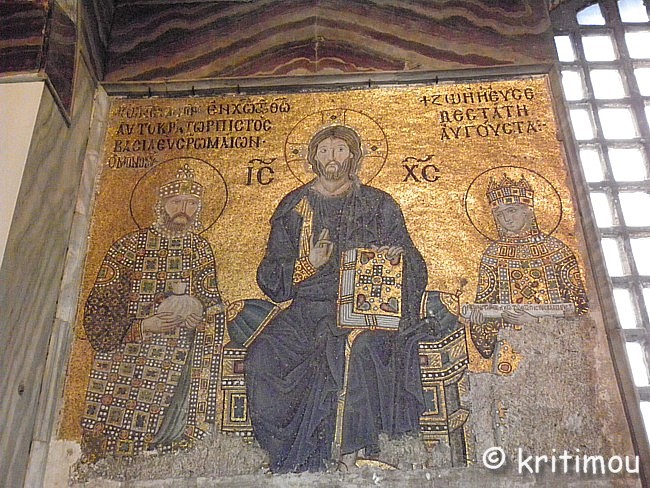 Christus Pantokrator mit Kaiserin Zoe und Kaiser Konstantin IX (Mosaik aus dem 11. Jahrhundert).