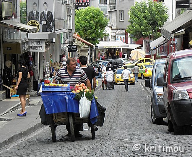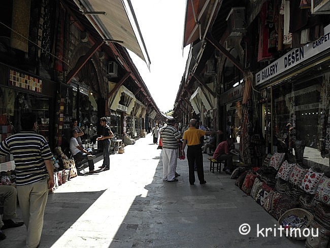 In einem Restaurant, wieder zurück in der Nähe der Blauen Moschee, machen wir Halt. Köstliche kulinarische Genüsse locken: Selbstgebackenes Brot und ein würziger Bauernsalat (alles ganz klein geschnitten: Tomaten, Paprika, Kräuter in würziger Soße und Bulgur), begleitet von einer eisgekühlten Cola. Alkoholische Getränke gibt es so nah an der Moschee nicht. Direkt vor uns ein Outdoor-Teppichladen, die Waren auf Motorhaube und Dach eines PKWs ausgebreitet. Der Nippon-3-Bus hält und entlässt die Gruppe in das Nachbarlokal. Die Prozente sind dem Reiseleiter gewiss. Nippon 4 ist jetzt auch eingetroffen, wieder ergießt sich ein Schwall Besucher in das Nachbarrestaurant. Die Busfahrer werden von dem Besitzer unseres Restaurants aufgefordert, woanders zu parken als ausgerechnet vor seinem Lokal. Das wird aber schwierig. Heftiges, lautes und lang andauerndes Rangieren lässt uns am späten Nachmittag zurück zum Hotel aufbrechen. |