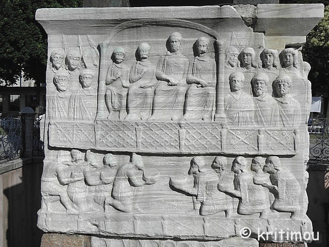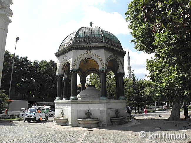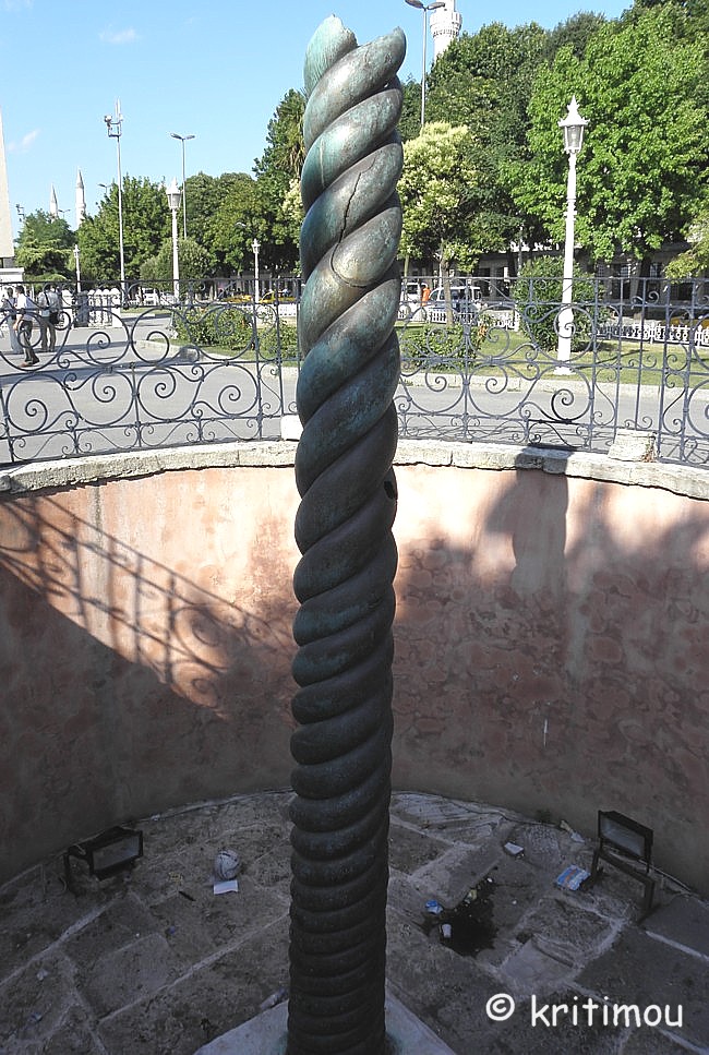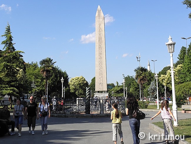 Nach dem anstrengenden Vortag noch etwas wackelig auf den Beinen wanke ich mit Alex in den Frühstücksraum unseres Hotels. Mir ist zwar immer noch nicht nach Essen, doch die passierte Frühstückssuppe mit viel nachbestellter Zitrone und einem (ich kann nicht widerstehen) ordentlichen Bohnenkaffee wecken meine Lebensgeister nachhaltig wieder auf. Voller Freude auf einen geruhsamen Tag ohne große Stadtwanderungen schlendern wir auf der kürzesten Strecke zur Altstadt. Auch heute bieten die vielen Straßenhändler ihre Waren und Dienstleistungen feil, hoffen auf ein kleines bisschen Glück. Im Hippodrom Bevor wir uns ein schattiges Sitzplätzchen suchen spazieren wir durch das Hippodrom, die zentrale Pferde- und Wagenrennbahn in byzantinischer Zeit. Heute ein beliebter Park künden allein Säulenreste als noch (teilweise) erhaltene Monumente von jenen vergangenen Zeiten. Nur noch bruchstückhaft erhalten ist die bronzene Schlangensäule aus dem 5. Jahrhundert v. Chr., die ursprünglich in Delphi stand und im vierten nachchristlichen Jahrhundert in’s Hippodrom gebracht wurde. ![]() Die aus einzelnen Steinen Gemauerte Säule stammt aus dem 10. Jahrhundert.