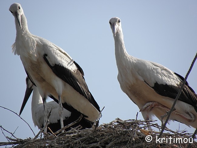 Nach Keramotí Nachdem wir uns in Fanári schon zwei Tage wunderbar entspannt haben, wollen wir am Nachmittag über Umwege nach Keramotí fahren, um Verwandte zu besuchen. Die riesige, grüne Ebene, durch die wir zunächst zuckeln, wird intensiv landwirtschaftlich genutzt. Wasser, das sich aus den Höhen des Rhodopen-Gebirges hier sammelt, sorgt für guten, ergiebigen Boden, aber auch für weite Sumpfgebiete. Diese waren früher noch wesentlich ausgedehnter, wurden aber im Laufe etlicher Jahrzehnte trocken gelegt und für den Ackerbau nutzbar gemacht. Die vorwiegend angebauten Feldfrüchte sind Baumwolle und Mais. Tabak sehen wir kaum noch, obwohl die Region berühmt dafür war; man denke an die alte Tabakbörse von Kavála. Vielleicht wird Tabak als Folge der Anti-Raucher-Gesetzgebung von der EU nicht mehr subventioniert, andere Früchte aber schon, wer weiß. Irgendwo erwischt uns der intensive Geruch nach gemähtem Klee, der als Viehfutter verwendet wird. Vereinzelt erspähen wir auch kleinere Schafherden. Überall stehen die charakteristischen Räder für die Wasserschläuche. Traktoren tuckern gelegentlich über die Straße. Die Getreidefelder sind auch hier bereits abgeerntet. Gepresste Getreideballen liegen zum Teil noch auf den Feldern. ![]() Agios Nikólaos bei Pórto Lágos Schon von weitem sichtbar ist die kleine Kirche des Agios Nikólaos nahe beim Fischerdörfchen Pórto Lágos. Die Kirche steht mitten in der Lagune und ist auf einem Holzsteg über seichtem Wasser erreichbar, ein kleines Wahrzeichen dieser Region und – wie so viele griechische Kapellen - ein Ort der Ruhe. Alex erzählt von früher, als nahe Verwandte bei einem Kirchenbesuch einmal so eingeschneit wurden, dass sie mehrere Tage lang dort bleiben mussten. ![]() Im Inneren der Kirche fallen das vergoldete Témplon und die vielen ebenfalls goldstrahlenden Details ins Auge, und die große Ikonen. ![]() Über einen weiteren, jedoch recht klapprigen Steg mit losen Bohlen, kann man ein Kloster erreichen, das der Panaghiá gewidmet ist. Doch wir belassen es beim Besuch der Agios Nikólaos und setzen unseren Weg fort. ![]() Avdhirá / Skála Weiter geht unsere Bummelfahrt durch kleine Dörfer, die im Aufschwung sind. Die Straßen sind gut, es gibt sogar Kindergärten. Auch die Kirchen sehen neu renoviert aus. Herauszuheben ist, dass in Avdhirá (Abdera) der griechische Philosoph Demokrit geboren wurde. Wir sind abgebogen und den Schildern zur Ausgrabungsstätte gefolgt. Von einer schmalen Straße aus sieht man das Gelände des alten Avdhirá, seine Grundmauern. Es liegt ziemlich einsam und verlassen da, niemand, der sich am heutigen Nachmittag für die antiken Überreste zu interessieren scheint. Und auch wir möchten weiter zu unserer Verabredung, wenden und fahren zurück zur Hauptroute. Ein weiteres Dörfchen, das wir passieren, heißt Mángana, und ich erwähne es deshalb, weil auf vielen der Strommasten Störche nisten. Es ist das erste Mal, dass ich diese großen Vögel in ihren Nestern bestaunen kann. ![]() Die „Kleinen“ sind mittlerweile flügge, starten ihre ersten Versuche.