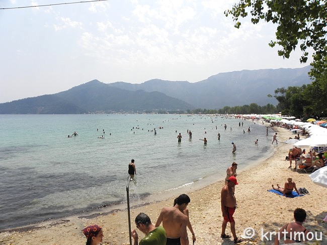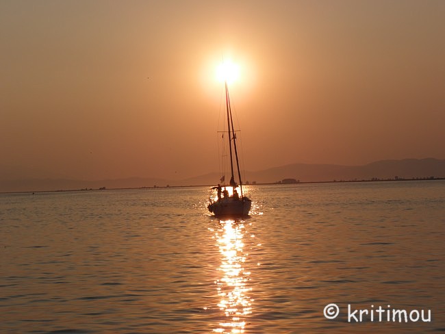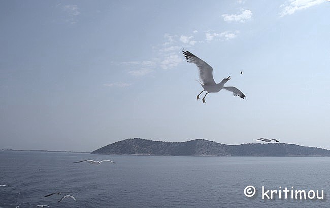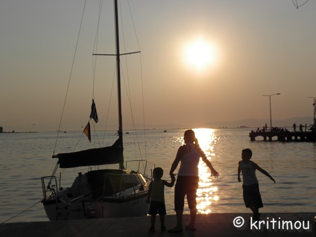 ![]() ![]() Langsam nähern wir uns dem Néstos, überqueren ihn über eine Brücke, biegen auf die Vía Egnatía ein, aber nur für ein kurzes Stück. Der Fluss verliert jetzt im Hochsommer erheblich an Wasser. Träge fließt es zum nahen Meer. Einige Wege und schmale Straßen zweigen zum Flussdelta ab. Mücken müssen dort jetzt zu Billionen sein. Von der Vía Egnatía biegen wir wieder auf die alte Nationalstraße ab, fahren Richtung Chrissoúpoli (Goldstadt). Das Nachbardorf heißt Chrissouchóri. Was haben die Ortschaften tatsächlich mit Gold zu tun? Vielleicht ein Bild für den sehr fruchtbaren Boden, der gute Ernten hervorbringt. Keramotí ist jetzt nur noch wenige Kilometer entfernt. Es wird touristischer. Neubaugebiete wurden für Ferienhäuser erschlossen. Viele Deutsche haben das genutzt, auch reiche Bulgaren, die prächtige Häuser gebaut haben. Und natürlich Griechen aus der näheren und weiteren Region. Keramotí – so sehen wir - ist ein beschaulicher Ferienort mit Hotels, Restaurants und allem, was man in den Ferien so braucht. Leider stellen wir fest, dass wir unser Handy vergessen haben, in dem die Telefonnummer gespeichert ist, die wir anrufen sollen, um uns an einem Treffpunkt abholen zu lassen. Die genaue Anschrift haben wir auch nicht dabei. An einer Tankstelle am Ortsausgang halten wir und fragen nach den Verwandten, die allerdings hier auch nur ein Ferienhaus haben und nicht ursprünglich aus dem Ort stammen. Ein junger Mann ist mit ihnen bekannt und bringt uns zu unserem Ziel, doch etwas außerhalb in einen Nachbarort. Abendbummel durch den Hafen Einen Abstecher nach Keramotí für ein paar Besorgungen nutzen wir, um ein Stündchen durch den Hafen zu bummeln. Auf Fischerbooten wird gewerkelt. Zwei Männer ziehen etliche mittelgroße Fische, die sie heute gefangen haben, aus dem Netz. ![]() Langsam geht die Sonne unter. Eine der Fähren nach Thássos legt ab, dreht und stampft davon. Thássos, mit seinen hohen Bergen im Hintergrund, davor, wesentlich kleiner, Thassopoúla. Ein Segelboot kommt mit Bikinischönheiten von einer Fahrt zurück, auch andere Bootsführer legen im ruhigen Wasser an, genießen den Frieden dieser Tageszeit. ![]() ![]() Sonntag Morgen Am frühen Morgen, auf der Terrasse beim Kaffee sitzend, schallt es aus verschiedenen Richtungen: von links der Pfarrer, der über Lautsprecher die Messe liest, von rechts ein Verkäufer, der mit dem Pickup unterwegs ist und ebenfalls über Lautsprecher seine Melonen anpreist: „Ich verkaufe Pepónia! Ich verkaufe Karpoúsia! Gute Ware! - Man kann sie mit dem Messer schneiden, mit der Säge - und mit der AXT!“ Das überzeugt. Wir möchten Pepónia und Karpoúsia kaufen. Unser Gastgeber P. (männlich) bedeutet dem Fahrer, vor der Terrasse des Hauses zu warten. Er bestellt laut rufend eine Honig- und eine Wassermelone. Bis P. zum Wagen gegangen ist, hat der Händler bereits drei Honig- und zwei riesige Wassermelonen in Plastiktüten gepackt. F. (P.’ s Ehegattin) ruft von der Terrasse her, dass das viel zu viel ist. Nur eine von jeder Sorte! Der Händler versucht P. zu überzeugen. P. schaut hilflos und überfordert, sitzt zwischen allen Stühlen. F. ruft weiterhin laut: „Nur eine von jeder Sorte!“ Widerwillig räumt der Händler von jeder Sorte wieder eine Melone aus der Tüte, sein Kompromissangebot: 2 Pepónia und 1 riesige Karpoúsi, während er weiter auf P. einredet. F. versucht immer noch von der Terrasse her wortgewaltig Einfluss zu nehmen, muss sich jedoch geschlagen geben. Als P. bezahlt und die Tüten zum Haus trägt, steigt der Händler hurtig in seinen Wagen und fährt blitzschnell davon, nicht dass noch jemand auf die Idee kommt, weitere Melonen zurückzugeben. Die erworbenen Früchte werden sogleich teilweise zerlegt, damit sie in den Kühlschrank passen. Später werden wir davon essen: Gut gekühlte, frische, saftige Früchte – hmmmm, lecker. Davon könnte man tatsächlich noch mehr vertragen! Ausflug nach Thássos Von Keramotí aus fahren viertelstündlich Fähren zur Insel. Vielleicht ist dies nur in der Hauptsaison so. So auch am heutigen Sonntag. Bereits am Morgen sind es an die 40 Grad und so verwundert es nicht, dass auch unsere Fähre um 9 Uhr schon gut besetzt ist mit Wochenendurlaubern oder Tagesreisenden, die sich an einem Strand auf der Insel abkühlen wollen, just for a change. Mit Blick auf das Hafengeviert legen wir ab. ![]() Ruhig tuckert die Autofähre durch die ruhige See. In flirrender Hitze suchen wir uns schnell ein schattiges Plätzchen. Kinder und Erwachsene füttern mit wachsender Begeisterung die Möwen, die über Jahrzehnte konditioniert, das Schiff die ganze Strecke hinweg begleiten und in wagemutigen Flugmanövern versuchen, die dargebotenen Leckerbissen zu erhaschen und gegen die Artgenossen zu verteidigen. ![]() ![]() Eine Musikantentruppe spielt ein paar nette Liedchen und erhält ihren Obulus dafür. Wir passieren den kleinen und unscheinbaren Kegel von Thassopoúla, nähern uns gleichzeitig der großen Schwester Thássos an. ![]() Durch die Hitze und das Gegenlicht erscheinen die Details nur verschwommen und milchig. Noch nie war ich auf Thássos, bin gespannt auf die Insel. Wir freuen uns jedoch zunächst auf die Klimaanlage unseres Autos. Also rein ins KFZ und den Körper wieder runterkühlen, bevor wir Fähre und Hafen verlassen und uns nach links wenden. Unsere Gastfamilie fährt vor, sie kennen sich hier aus. Wunderschön schattig windet sich die Fahrstraße hügelan in einen Platanen- und Kiefernwald und bietet zwischendurch Ausblicke auf das nordägäische Meer. Unser Ziel ist zunächst Panaghiá, dessen Zentralplatz von schmucken Häusern und alten Platanenriesen bestanden ist. Das jahrhundertealte Dorf ist adrett für die Gäste hergerichtet. Allerdings dient unser Besuch nur einem Zwischengeplänkel, nämlich einem weiteren Kaffee zum richtigen Wachwerden. In den Lokalen sind fast alle Plätze besetzt, es wird kräftig geschwatzt. In einem Caf