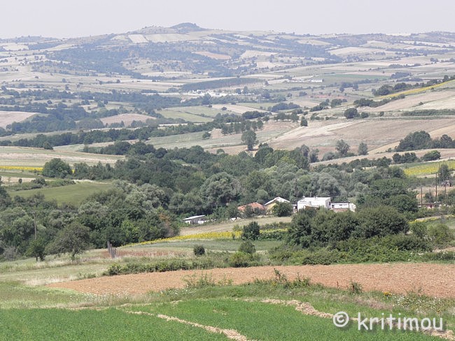 Mit den Erinnerungen an das gestrige Konzert wachen wir nach erholsamem Schlaf im klimatisierten Zimmer auf, packen unsere Sachen, frühstücken noch etwas und verlassen dann gleich Thessaloniki. Nichts wie raus aus der Hitze, raus auf` s Land! Für den Rückweg nach Fanári wollen wir uns richtig Zeit lassen und einen großen Schlenker zum Kerkínisee machen. Wir verlassen die Stadt in nordöstlicher Richtung, fahren ein Stück Autobahn und biegen in der Nähe von Lití ab auf eine Nationalstraße, die durch das hügelige Hinterland über Strimonikó führt und nördlich von Serrés, in Lefkónas, auf eine weitere Nationalstraße stößt. Im Radio spielen sie tolle Musik, wir singen mit bei Volume 27 und kaum Verkehr auf der Straße, genießen den schönen Tag und sind bereit, Neues zu erkunden. Hinter Asiros beschließen wir, die Nationalstraße zu verlassen und auf schmalen Sträßchen durch die Dörfer zu zuckeln. Die Mittelgebirgslandschaft bringt immer wieder neue Eindrücke für das Auge, langweilig wird es hier nicht. Als wir über die Dorfstraße nach Lachanás hineinfahren, beschließen wir, hier eine kleine Pause einzulegen.