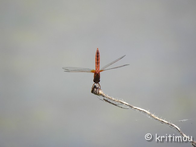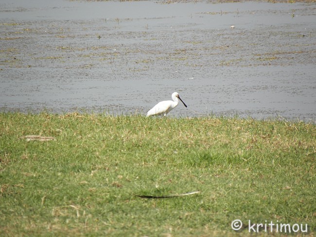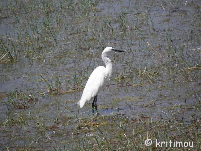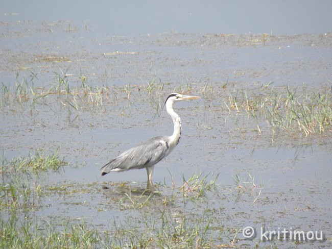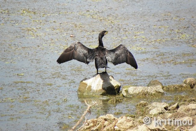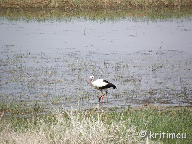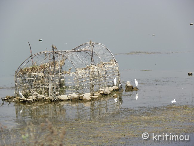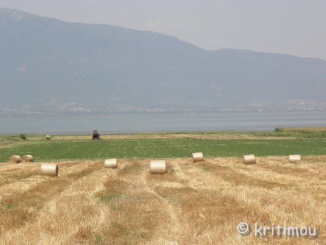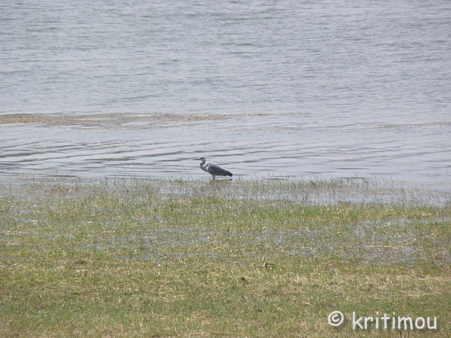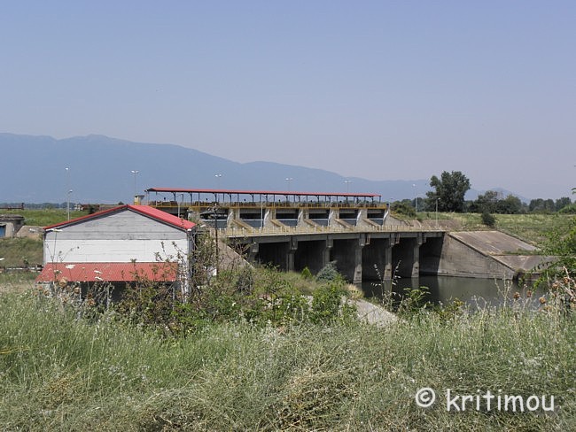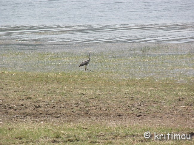 Am Dorfeingang erinnert ein Kriegsdenkmal an die Schlacht von 1913 während des Balkankrieges. Die aufgereihten Kanonen zeigen alle in Richtung Bulgarien. Ein Hund liegt faul mitten auf der Straße. Wir brauchen nur der Musik zu folgen, die uns in ein winziges Lokal lockt. Thalassinós at his best! Neben einer kleinen Paréa gutgelaunter junger Leute nehmen wir an dem zweiten Tisch im Außenbereich Platz und singen einfach das Lied mit, was uns augenblicklich in einen freundlichen Kontakt mit den Sitznachbarn bringt. Die zusammengestellte Disk trifft voll unseren Musikgeschmack, und der Frappé ist reichhaltig und preiswert. Itane mia fora singt Níkos Xyloúris, einfach zum Schwärmen. Aber sorry, Kreta ist gerade weit weg. Vielmehr begeistert uns die Momentaufnahme in diesem kleinen nordgriechischen Dorf und prägt sich ein. Ein Auto mit zwei jungen Männern hält vor dem Lokal. Unsere Sitznachbarn rufen: “Kommt her, setzt euch dazu!“ – „Geht nicht, wir haben zu tun, müssen 4 Autos waschen!“ Wir schauen uns noch ein wenig im Dorf um. Keine Villen gibt es hier, dafür aber normale Einfamilienhäuser ohne Schnickschnack. Es wird gewerkelt. „Lachanás ist ein lebendiges Dorf“, hat uns auch das Dorfmagazin vom Juni verraten. Nach unserer Rast streben wir wieder zur Nationalstraße und erreichen schon bald Strimonikó. Von hier führt eine schmale Straße zunächst links am Strimónas-Fluss und im weiteren Verlauf am linksseitigen Ufer des Kerkínisees entlang. Dort, am Ausgang des Sees, befindet sich ein Staudamm. Auf dem weiteren Weg begegnet uns fast niemand. Ganz langsam rollen wir fast lautlos am Rand des ruhigen, graufarbigen Sees vorbei. Direkt am Ufer erkennt man, wie viel Wasser jetzt im Hochsommer der See bereits eingebüßt hat. Doch der breite sumpfige Uferstreifen ist ein Paradies für Wasservögel, die hier bequem der Nahrungssuche frönen. Immer wieder bleiben wir stehen, genießen den Blick auf die spiegelglatte Wasseroberfläche und das mächtige Kerkinigebirge im Hintergrund. Doch am meisten fasziniert uns die Vielfalt der hiesigen Vogelwelt. Scheu sind sie, die Reiher, Pelikane, Löffler, Störche und Kormorane. In Ermangelung ornithologischer Kenntnisse versuche ich einfach nur, mit meinem Kameraobjektiv möglichst nah an die Vögel heranzuzoomen. Was mir allerdings nicht gelingt, ist, einen Reiher im Flug zu erwischen. Zu schnell ist er aus dem Blickfeld verschwunden. Beeindruckend die Flügelspannweite. Irgendwo auf der Strecke begegnet uns eine Viehherde. Die gut genährten Tiere suchen Schatten unter den Bäumen und das kühle Nass zur Erfrischung. An einer Stelle möchte ich aussteigen, werde jedoch gleich von großen Käfern bombardiert. Nein, es sind Zikaden, die sich einerseits auf meinen Kopf fallen lassen, andererseits die Gummidichtung der Beifahrertür belagern. Merkwürdig! Die Insektenwelt ist so nah am Süßwasser vielfältig und zahlreich. Libellen vollführen sogar Yogaübungen! Immer weiter rollen wir am westlichen Ufer des Sees entlang und erreichen am westlichsten Zipfel den Ort Kerkíni. Ein wenig Tourismus hat sich hier entwickelt. Es gibt Unterkünfte und Esslokale. Mittlerweile ist die Mittagszeit schon überschritten, sodass wir uns zu einem Imbiss entschließen. Etliche Tavernen bieten Süßwasserfische aus dem See an. Für unser sehr reichhaltiges Mal (ohne Fisch) zahlen wir gerade mal 12 Euro. Von unserem Platz aus sehen wir auf fast jedem Strommast Storchennester oder einzelne Störche stehen, die sich in der Hitze mit offenem Schnabel Kühlung verschaffen. Im Ort gibt es ein Infozentrum, in dem ich mir Material zum See besorge.