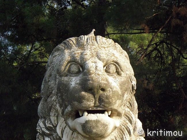 Der Kerkínisee steht ebenso wie der Vistonídasee bei Pórto Lágos unter dem Schutz der Ramsarkonvention. Schon vor 20.000 Jahren füllte sich in der Region eine Seenlandschaft regelmäßig mit dem Schmelzwasser der Gletscher des Rodhópengebirges. Noch zu Beginn des 20. Jahrhunderts gab es in der Region vorwiegend Marschland, das jahreszeitlich bedingt immer wieder überflutet wurde und fruchtbare Erde hervorbrachte. 1932 wurde der Kerkinisee als künstliches Wasserreservoir und zur Landgewinnung durch Kanalisation der Wasserläufe angelegt. Das neue Stauwehr wurde erst 1982 fertiggestellt. Diese Maßnahme veränderte den Charakter der Landschaft und die Einnahmequellen der Menschen. Die Artenvielfalt umfasst 30 Fisch-, 12 Amphibien-, 22 Reptilien- und 300 Vogelarten, (von denen 50 auf der roten Liste der vom Aussterben bedrohten Arten in Griechenland stehen) und 58 Säugetierarten. Obwohl es sich also um einen künstlichen See handelt, hat dies auf das Vorkommen vieler, z. T. auch seltener Wasservögel, keinen Einfluss. Der gesamte Charakter des Sees weist optisch keinesfalls auf eine künstliche Anlage hin. Später setzen wir unseren Weg fort. Die Straße führt jetzt etwas weiter vom Wasser weg. Zu Fuß (wenn wir Zeit hätten) könnten wir ganz um den See herum gehen, direkt am Ufer entlang. Hoffen müssten wir allerdings, dass uns keine Schafherden mit Riesenhütehunden begegneten, meiner heimlichen Phobie. Vom Auto aus gesehen blickten sie aber ziemlich cool und gelassen drein. Wir passieren die Dörfchen Neochóri, Mandráki, Akritochóri, Thrákiko und Omaló am Nordufer des Kerkínises. Dort, wo der Strimónas in den See mündet, verlassen wir das Wassergebiet und fahren zur Nationalstraße, die weiter nach Siderókastro und Serrés bis zum Golf von Orfanós führt. Dort möchten wir uns noch den imposanten Löwen von Amphípolis anschauen, den wir bisher nur aus einer Vorbeifahrt mit dem Bus kennen. Unterwegs genießen wir herrliche Weitblicke, die nur durch das Kerkínigebirge im Norden und die Hügelketten des Vrondoús- und Meníkioberges auf der östlichen Seite begrenzt werden. Blicke über prosperierende Landwirtschaft; kleine Dörfer, nicht reich, aber lebendig, mit freundlichen, gelassenen Menschen. Der steinerne Löwe bei Amphípolis zieht immer wieder Menschen an. Der genaue Zweck seiner Erbauung ist nicht bekannt, doch – wie man einer Infotafel entnehmen kann – wurde er wahrscheinlich zu Ehren von Laomedon aus Lesbos, eines der drei Admiräle Alexander des Großen, errichtet, der sich in Amphípolis niedergelassen hatte. Löwe mit Taube Es ist schon fast Abend geworden, als wir beschließen, die noch 200 km bis nach Fanári ohne weiteren Umwege in Angriff zu nehmen, am liebsten über die Egnatía. Doch irgendwie verpassen wir die Auffahrt und fahren über die alte Nationalstraße, direkt am Meer entlang. Einfach fantastisch das stille Meer zur Rechten, die Ferienorte, die Insel Thássos gegenüber. Eine mächtige Turmruine und im Rückblick eine ganze Anlage liegt friedlich in der Abenddämmerung. Kurz vor Kavála gelangen wir unbeabsichtigt doch noch auf die Egnatía, umfahren die Stadt großräumig, erhaschen aber doch noch Blicke von oben auf diesen wundervollen Ort, der jetzt am Abend hell vor dem dunkelblauen Meer schimmert. Es ist schon dunkel, als wir bei Pórto Lágos anhalten, weil ich die Mondsichel fotografieren möchte. Ich öffne das Fenster nur einen Spaltbreit, und sofort beginnt ein Angriff von Milliarden von Killermoskitos. Aber ganz schnell schließe ich das Fenster wieder in einem Reflex. Die Mondsichel muss ich nicht auf Foto haben! Nix wie weg hier, auf direktem Weg nach Fanári! |