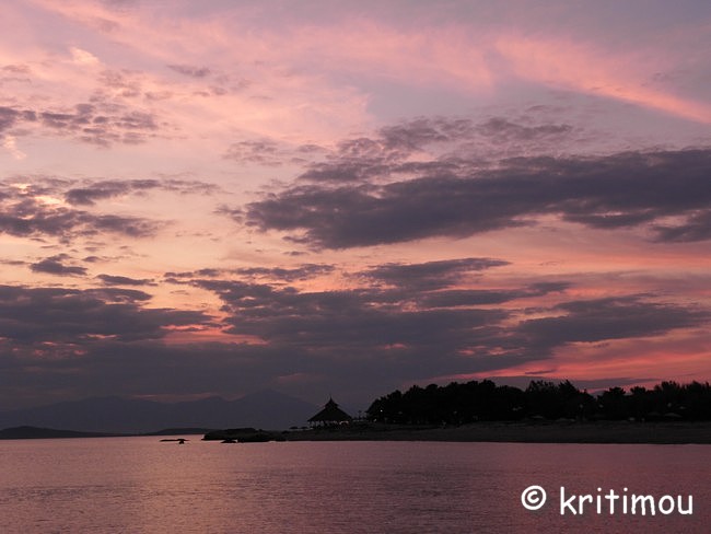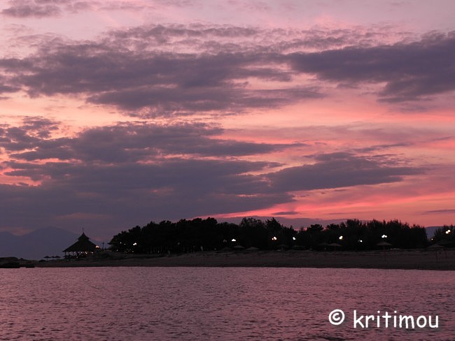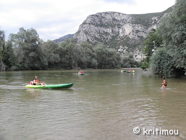 Wohlergehen Die restlichen Tage möchten wir uns einfach nur erholen. Trotz weiterhin heißer Temperaturen wagen wir samstags (um die Mittagszeit) einen kleinen Ausflug zum Markt nach Komotiní. Es sind schon über 40 Grad im Schatten, als wir über den Basar schlendern. Hier kann man wirklich preiswert einkaufen. Wir erstehen eine Pepóni und mehrere andere Kleinigkeiten. Knapp einem Hitzeschlag entronnen wanken wir jedoch schon nach kurzer Zeit wieder davon. In einem schattigen Café nehmen wir Kaltgetränke zu uns. Am Nachmittag widmen wir uns dem Strandleben in Fanári. Entgegen unserem Vorhaben, mit dem Auto zum benachbarten Sandstrand von Aróghia mit seinen Sonnenschirmen und Liegen zu fahren, gehen wir doch wieder lieber zum nahe gelegenen, dorfeigenen Kiesstrand und finden noch einen freien Schirm. Eine Stunde Schlaf im Schatten und danach ein Bad im Meer lassen die Lebensgeister langsam wieder erwachen. Im Laufe des späten Nachmittags trudeln noch etliche Familien hier ein, um das Wochenende einzuläuten und die jetzt erträglich warmen Sonnenstrahlen zu genießen. Man schnorchelt, plantscht oder steht einfach im Wasser herum und plaudert. Kinder quietschen herum. Alle scheinen zufrieden, und wir sind es auch. Noch einmal zum Néstos Es ist so heiß, dass wir auch nachts nicht mehr durchschlafen. Trotz durchziehender Brise und Ventilator schwitzen wir uns durch die Nacht. Am Vormittag stellen wir fest, dass nun auch noch ein heißer Meltemi weht. Ein Spaziergang zum Basári von Fanári (der schon längst geschlossen hat) wird zu einem fast unerträglichen Unterfangen, obwohl er nur etwa hundert Meter entfernt von unserer Unterkunft liegt. Ein Blick auf den Strand und wir erkennen, dass der Wind sehr kräftig bläst und ein Strandaufenthalt heute wohl nicht in Frage kommt. Noch eine Weile dümpeln wir im Hafen herum. Doch bald beschließen wir, einen weiteren Abstecher zum Néstos zu machen. Die Fahrt dorthin impliziert auch wieder eine angenehme Zeit im klimatisierten Auto. Irgendwo bei Xánthi sehen wir plötzlich dicke Rauchwolken vor uns auf unserer Strecke. In einem kleinen Waldstück, das direkt neben der Straße beginnt, brennt es. Zum Glück ist die Feuerwehr bereits da, um die Flammen zu löschen. Ein Polizist spricht unentwegt in sein Handy. Feuer fangende Zweige der Bäume zischen und knallen erschreckend laut. Es ist so leicht vorstellbar, wie schnell sich bei dem Wind aus einem noch überschaubaren Feuer ein Flächenbrand entwickeln kann, der alles vernichtet. Da wir die Löscharbeiten nicht behindern wollen, fahren wir zügig weiter. Wir lechzen nach einer Abkühlung. Der Néstos ist ein kalter Gebirgsfluss, der heute, am Sonntag, nicht nur uns einlädt. In unserer Lieblingsbucht hat sich bereits eine vielköpfige Familie niedergelassen. Laut tönt Musik aus dem Autoradio. Kinder tollen im Wasser herum. Ein Grill wurde bereits angeworfen. Einer der Männer hat sich auf den Bauch gelegt und lässt sich von seiner Frau genussvoll den Rücken massieren. Daneben strampelt quietschvergnügt ein Baby. Eine Gruppe junger Männer nähert sich flussaufwärts. Ihre lauten Schreie hallen von den Felswänden wieder. Über eine breite Schlammbank kommen sie herauf. Einer nach dem anderen stürzt sich tapfer ganzkörpermäßig in den eiskalten Fluss, begleitet von Geschrei, weil der jähe Temperaturwechsel anders wohl nicht auszuhalten ist. Oder weil es einfach Spaß macht. Das Flusswasser kühlt den ganzen Körper so wunderbar, selbst wenn man nur bis zu den Waden eintaucht. Herrlich erfrischend! Die Kinder unserer Nachbarn allerdings springen ganz hinein, sind ständig in Bewegung. Ein kleines Paradies. Der Fluss führt allerdings heute etwas mehr Wasser als bei unserem letzten Besuch. Langsam ziehen Wolken auf. Über den Bergen regnet es vielleicht. Kleine Fische kommen bis zum Ufer. Überall blubbert es im seichten Gewässer. Irgendwo bewegt sich etwas Schwarzes, Längliches im Wasser. Eine Flussschlange? Ein griechisches Paar mittleren Alters hat das Auto geparkt und kommt vorsichtig zum Ufer. Sie haben keinen Mut, auch nur einen Zeh ins Wasser zu halten. Den Steinpfad hinauf wollen sie auch nicht, um zumindest ein wenig die Aussicht zu genießen. Sie haben nämlich Angst vor Überfällen?! Allerdings wollen sie demnächst eine Zugfahrt entlang des Néstos genießen. Da hätten sie genug Aussicht, meinen sie. Nun ja, so wird es wohl eher nicht sein, denn das Grünzeug am Flussufer versperrt fast gänzlich die Sicht. Das wissen wir aus eigener Erfahrung. Wir widmen uns weiter unseren Kneippanwendungen im eiskalten Wasser. Nebenan werden quirlige Kinder und Eltern erzogen. Der Bruder eines kleinen Jungen macht einen Kopfstand im Wasser, in der Nähe des Ufers. Der kleine Junge will das auch, holt sich Rat beim Vater. Der erste Versuch misslingt, der Junge fällt mit dem Gesicht in den Sand und fängt an zu weinen. Der Vater steht ca. zwei Meter daneben, rührt sich aber nicht in Richtung Trostspendung. Der Junge schreit in Richtung Vater: „Hol mich hier raus!!!“ Der Vater: „Komm doch selbst hierher!“ Der Junge: „Du hast es mir falsch gesagt, jetzt hol mich hier heraus, damit ich dich verprügeln kann!!!!“ In unmittelbarer Nähe steht eine Frau mit ihrem Sohn im Wasser. Der Sohn weint quengelig. Die Mutter: „DU wolltest zum Fluss! Ich werde dich zum Piniós bringen, um dich zu ertränken!“ Daraufhin hört der Sohn schlagartig auf zu weinen. Jäh ändert sich das Bild. Eine ganze Flotte von Kajakfahrern kommt den Fluss von oben herab und legt in unserer Bucht an. Aus Stavroúpoli kommen sie. Fünfeinhalb Stunden waren sie flussabwärts unterwegs. Fünfzig Euro pro Person kostet es bei Riverland (Stützpunkt Toxótes, Stand 2009). Im Preis eingeschlossen sind An- und Abfahrt mit dem Zug, Verpflegung (Kaffee, Wasser, Sandwich). Kleider und andere Gegenstände können in einem wasserdichten Behälter auf dem Boot verstaut werden. Wäre morgen nicht unser letzter T