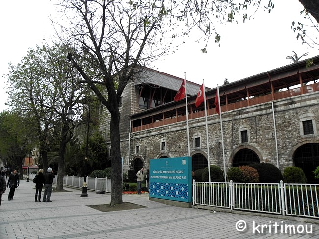 Auch an unserem letzten Tag in der Stadt bieten sich aufgrund des kühlen Wetters keine Outdoor-Aktivitäten an. Heute sind jedoch die Museen wieder geöffnet, ein perfekter Tag für einen Besuch. In Istanbul gibt es davon reichlich viele, unter anderem das Archäologische Museum beim Topkapı-Palast (drei Sammlungen: Klassische Altertümer, Fayencen, Altorientalische Kulturen), das Santral Istanbul, Silahtar (Moderne Kunst) beim Goldenen Horn, das Pera-Museum (Gemälde) in Beyoğlu, das Museum der Kalligrafie bei der Beyazıd-Moschee, das Mosaikenmuseum hinter der Blauen Moschee im Arastarbasar, das Museum für türkische und islamische Kunst. Wir entscheiden uns für letzteres. Sein Eingang befindet sich im Hippodrom, etwa auf Höhe des Ägyptischen Obelisken, gegenüber dem Eingang zum Gelände der Blauen Moschee. (Öffnungszeiten täglich, außer montags, zwischen 9.00 Uhr und 16.30 Uhr, Stand 2012) ![]() Neben dem nicht minder imposanten Katasteramt gelegen, ist das Eingangsgebäude selbst ein Museumsstück: Es stammt aus dem Jahr 1524 und war früher der Palast des Großwesirs Ibrahim Pascha. Die Sammlung vereint fast 1500 Jahre Kunstgeschichte und zeigt unter anderem Kalligrafien, Gefäße, Einrichtungsgegenstände, ethnologische Besonderheiten aus verschiedenen Regionen, vor allem jedoch eine riesige Ausstellung von Teppichen (daher auch sein früherer Name „Teppich-Museum“). Für diese Vielfalt erhielt das Museum mehrere internationale Museumspreise. Untergebracht sind die Exponate im gesamten Gebäudekomplex, einem Karree mit einem schön angelegten Innenhof. ![]() In dieser riesigen Ausstellung spiegeln sich die einzelnen Kunstepochen wieder, die die Region ab dem 7. Jahrhundert beinflusst haben. Zur frühen islamischen Kunstepoche (700 - 1050) zählt man die Errungenschaften der Umayyaden (Arabien) und der Abbasiden (Irak). Glücklich kann sich ein Museum schätzen, wenn es halbwegs intakte Fundstücke aus jener Zeit präsentieren kann, wie aus der sagenhaften abbasidischen Stadt Samarra, am linken Tigrisufer gelegen. ![]()