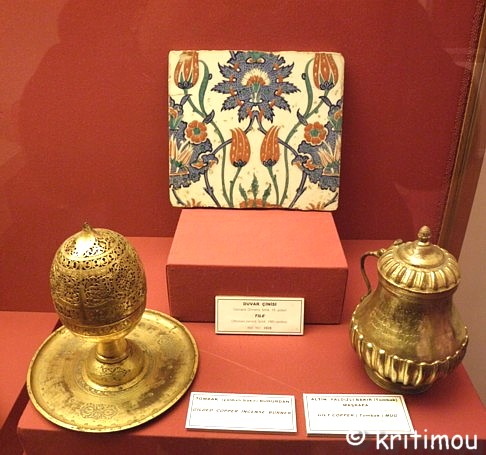 Die drei Schalen stammen aus der Seldschuken-Periode, 12./13. Jahrhundert Die Aufzählung der Kunststile der verschiedenen Völker und Stämme der Region ist an dieser Stelle nicht abschließend. Übergreifend spricht man von der Osmanischen Kunstepoche in der Zeit von 1299 bis 1923. Überall begegnet uns in Istanbul die Fliesenkunst aus jener Zeit, auch in diesem Museum.