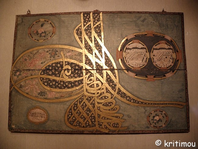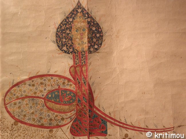 Den Schriftzug der osmanischen Sultane nennt man auch Tughra - im nächsten Bild die Tughra von Sultan Osman III.