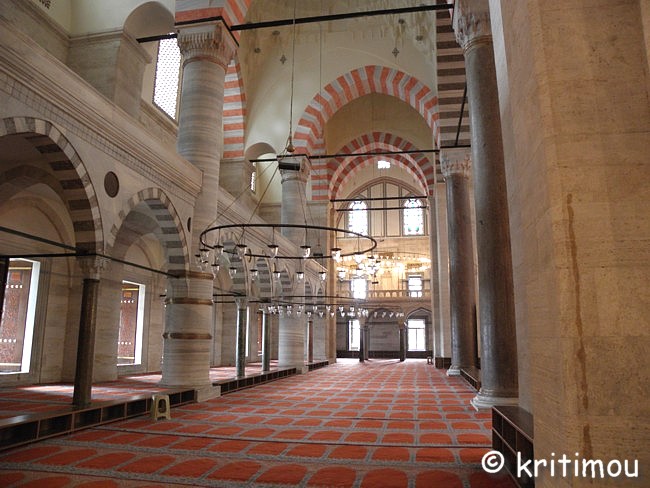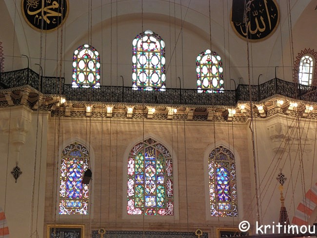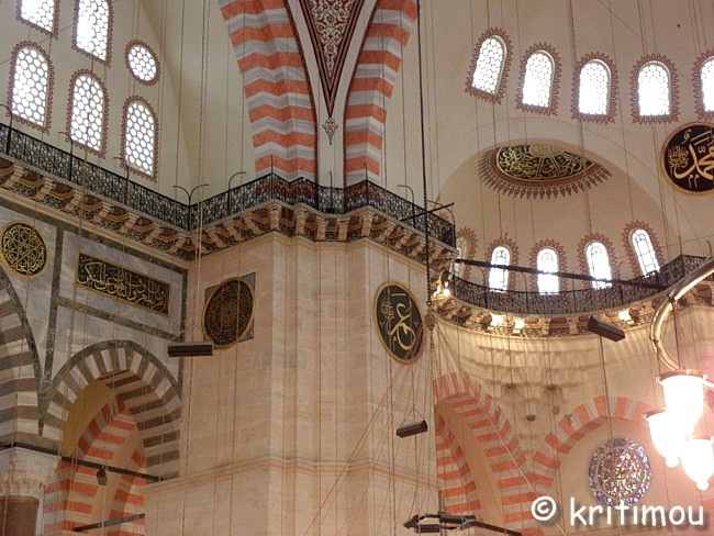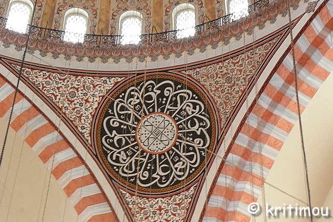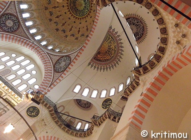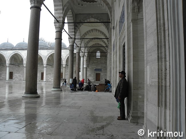 Als wir am Morgen aus dem Fenster schauen, stellen wir fest, dass es regnet. Nicht kräftig, eher nieselnd, aber stetig. Das nächtliche Gewitter muss zu einem mächtigen Temperatursturz geführt haben, denn die Leute draußen haben sich warm eingepackt. Dazu ist es noch windig, so richtig ungemütlich. Das Istanbuler Leben nimmt trotzdem seinen Lauf. Wie immer sind viele Menschen unterwegs. Sie gehen ihrer Arbeit nach, machen Besorgungen, bewegen Warenballen, be- und entladen anliefernde Kleinlaster. Für uns ist es eher kein Wetter für einen ausgedehnten Stadtbummel. Schade, heute könnte man sich eines der Museen vornehmen, doch montags sind viele geschlossen. Es gibt jedoch eine Moschee, die wir noch nicht gesehen haben und die sich zu Fuß gerade mal 10 Minuten von unserem Hotel entfernt befindet. Konstruiert wurde sie zwischen 1550 und 1558 vom berühmten Baumeister Mimar (Architekt) Sinan, dessen Ruhm sich weit über die Grenzen hinweg verbreitete. Attribute wie „Osmanischer Michelangelo“ gab man ihm wegen seiner ästhetischen Baukunst, „Gedichte in Stein“ habe er kreiert. Über vierhundert Bauwerke hat dieser geniale Architekt konstruiert. Darunter waren Brücken, Wasserleitungen, Hamams, Karawansereien, Schulen, Krankenhäuser, Paläste, Mausoleen und eben auch Moscheen. Von der Selimiye-Moschee in Edirne spricht man zwar als seinem „Meisterwerk“, die Süleyman-Moschee in Istanbul als sein „Gesellenstück“ nimmt gegenüber vielen der anderen Moscheen Istanbuls dennoch eine besondere Stellung ein. Erbaut wurde sie im Auftrag von Süleyman, dem Prächtigen. Sein Mausoleum und das seiner machtvollen Frau Roxelane befinden sich auf dem zur Moschee gehörenden Gelände. Auch Sinan selbst wurde neben der Moschee beigesetzt. Sei es, wegen ihrer Größe und der Herausforderung an statische Elemente, um die große Kuppel in der Mitte des Gebetshauses sicher zu stützen, sei es wegen des großzügigen Außenbereichs, umgrenzt von einem langgezogenen Gebäudekomplex aus früheren Medresen (Schulen), einem Imaret (Armenküche), einem Krankenhaus, sogar einem Observatorium und anderen Funktionsgebäuden, oder vielleicht auch wegen der Lage der Moschee an einem Hügel, wodurch das Gelände zu seiner Nutzung zum Goldenen Horn hin terrassiert werden musste, ganz zu schweigen von der Ausgestaltung des Moschee-Innenraums, die Süleymaniye hat so einige Besonderheiten zu bieten, die man sich als Tourist nicht entgehen lassen sollte. Schon einmal, auf dem Rückweg vor ein paar Tagen aus der Innenstadt, gelangten wir in den Park außerhalb der Moschee, und sahen die Sonne hinter den kleinen Kuppeln der sie umgrenzenden Gebäude untergehen. Das graue Wetter von heute vermiest uns allerdings die Lust, das Außengelände weiter zu erkunden. Im Gegenteil freuen wir uns, als wir endlich den Schirm im Innenhof der Moschee schließen können. Der kalte Wind lässt uns nur einen Moment hier verharren. Schlicht geschmückte Kuppeln über dem Bogengang entlang der Außenmauer und einige kunstvolle Kalligrafien über Türen und Fenstern geben erste Eindrücke, während das Regenwasser über den leergefegten Innenhof läuft. ![]() ![]() Vor dem Betreten der Moschee müssen wir uns wie immer unserer Schuhe entledigen. Allein mit diesem Balanceakt – einerseits nicht mit den Schuhen auf das bereits zur Moschee gehörende, trockene Stück Eingang zu treten, andererseits nicht mit den Strümpfen auf den nassen Streifen davor zu geraten – setzt man sich am heutigen Tag einer akuten Erkältungsgefahr aus. Nur wenige andere Touristen befinden sich im Innenraum. Ähnlich wie bei unserem Besuch der Rüstem-Pascha-Moschee dürfen wir uns auch hier nur im hinteren Bereich bewegen, selbst die Seitenbereiche sind abgesperrt. ![]() Auffallend sind die Buntglasfenster auf der Wand mit der Gebetsnische (Mihrab); sie wurden vom seinerzeit berühmten Meister der Glaskunst, Ibrahim, dem Trinker, gefertigt. ![]() Ein Blick nach oben zeigt die verschachtelten Kuppeln und Küppelchen, die sich um die große Hauptkuppel gruppieren und kunstvoll ausgestattet sind. ![]() Bei der Gestaltung des Innenraums hat man im Vergleich zu anderen Moscheen häufig die Farbe Rot benutzt: Die Farbnuance des Teppichs korrespondiert mit der, die die Arkaden und Fensternischen in einem Streifen farblich absetzt. Es ist ein warmes, mittleres Rot. Die wenigen Fayencen beinhalten das sogenannte Bolus-Rot, ein hochwertiges Erdpigment. ![]() ![]() ![]() Die Verwendung dieser warmen Rottöne sollte eigentlich auf das eigene Gefühl ausstrahlen, doch auch innerhalb des Gemäuers ist es kalt. Irgendwo sind Fenster offen, und es zieht unbarmherzig herein. Nicht lange halten wir es aus. Draußen regnet es immer noch. Ich bin froh, als ich endlich wieder meine Schuhe anziehen kann. Weitere Moscheebesuche sind für heute gestrichen. Es bleibt uns keine andere Wahl, wir müssen unbedingt ins Warme. Und da kommt uns eine Bäckerei auf einer Kreuzung gerade recht. Tee gibt es hier, und noch ein paar Gebäckstücke, die uns der junge Mann hinterm Tresen serviert, als wir uns in dem winzigen Raum an einem der drei Holztische niedergelassen haben. Vielleicht ist das Hüzün. Hüzün bezeichnet ein besonderes Lebensgefühl, eine Art kollektive Melancholie, abzugrenzen von der individuellen Tristesse. Hüzün ist ein Gemeinschaftsgefühl, das eine ganz Stadt befallen kann, auf jeden Fall Menschen gemeinschaftlich, ohne dass sie sich unbedingt kennen müssen. Am heutigen Tag spielt das Wetter in Istanbul diesbezüglich eine entscheidende Rolle. Wobei Orhan Pamuk, dieser großartige türkische Schriftsteller und Nobelpreisträger, in seinem Buch „Istanbul“ diesem Gefühl ein ganzes Kapitel gewidmet hat. Er beschreibt diese Art von Melancholie im Musikempfinden, in der Poesie, sogar in der Lebensanschauung und bezogen auf Istanbul als „Ausdruck dessen, was die Stadt eigentlich ausmacht.“ Untermauert wird dies durch Bilder wie „Familienväter, di
