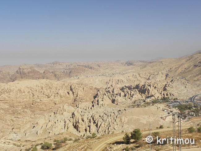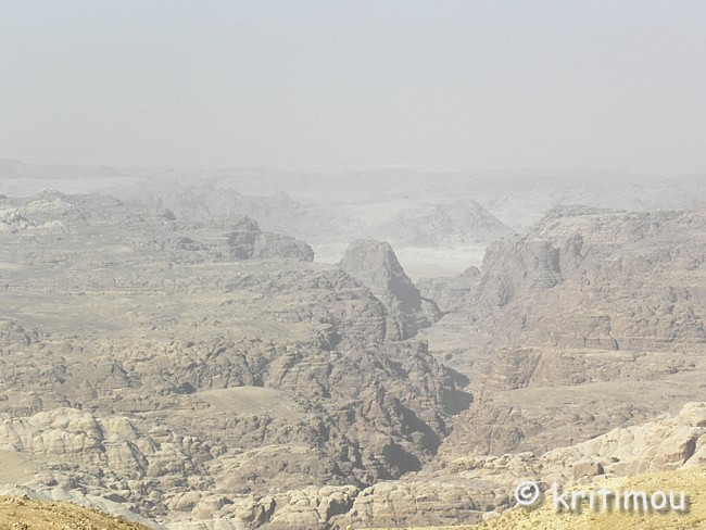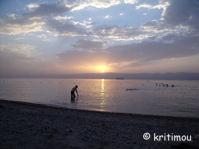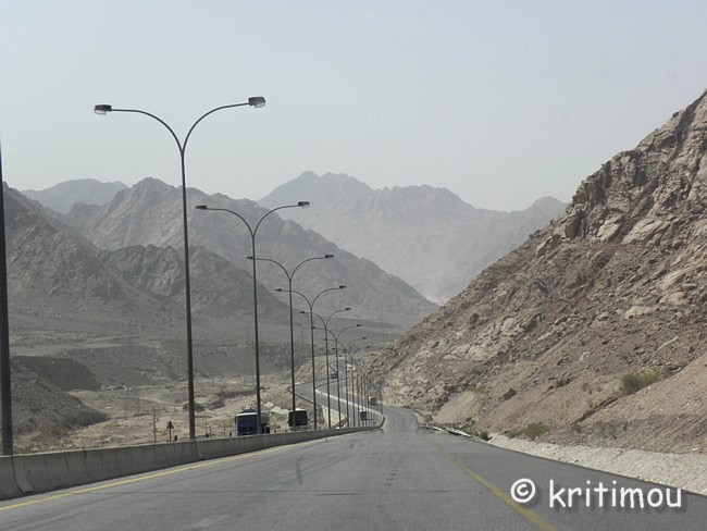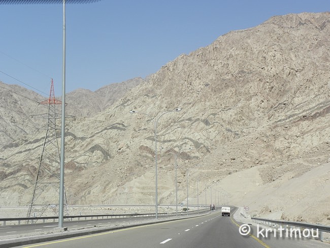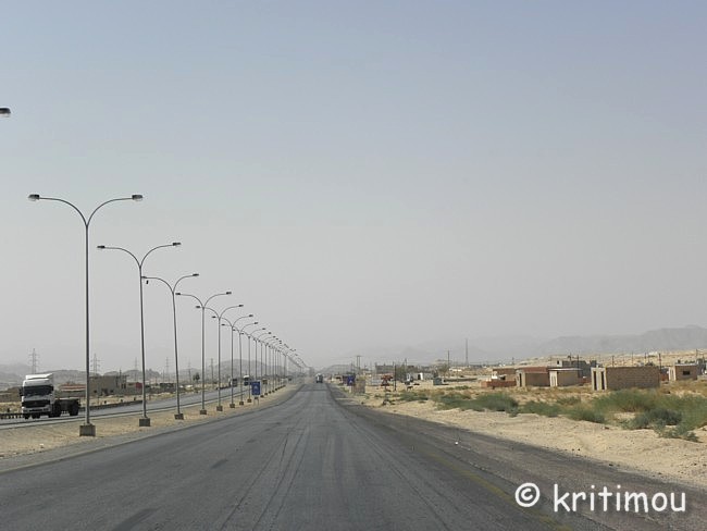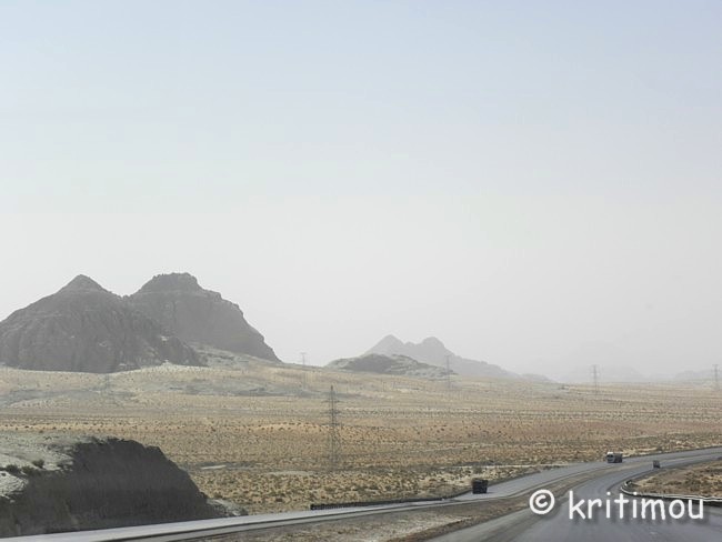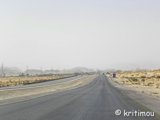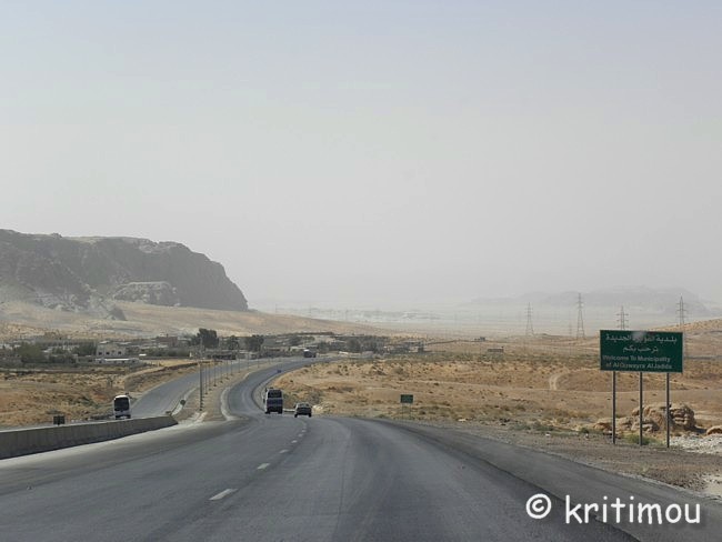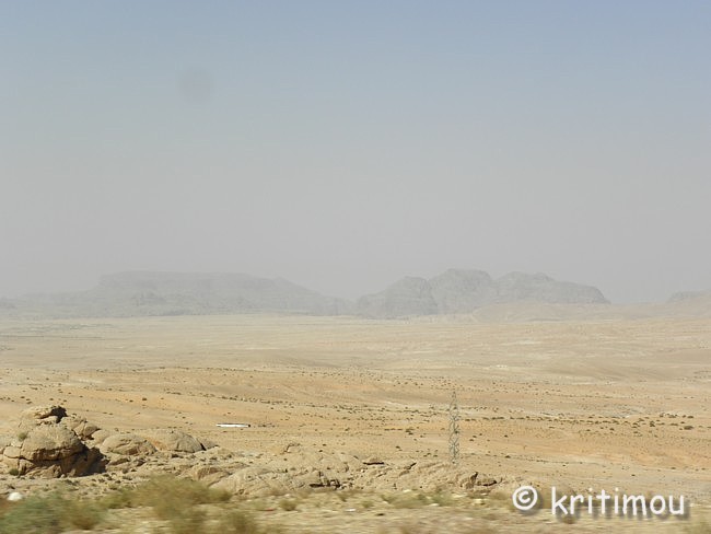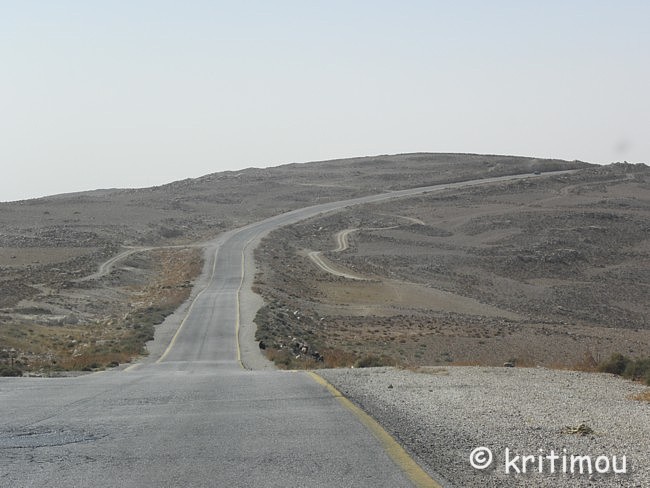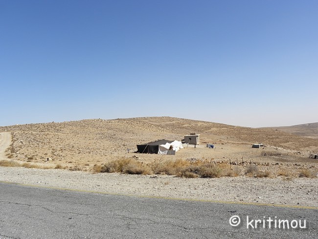 Heute werden wir Petra verlassen und bis zum südlichsten Zipfel Jordaniens, ans Rote Meer, nach Aqaba fahren. Noch einige Schmankerl liefert unser Hotelwirt in Wadi Musa. Als wir die über die Buchungsmaschine angekündigte Möglichkeit, per Scheckkarte zu bezahlen, nutzen wollen, akzeptiert er dies dann doch nicht. Die Gebühren seien zu hoch, meint er lapidar, wir sollen Bargeld besorgen. Die Geldzapfautomaten der Umgebung sind defekt, und heute ist Feiertag, d.h. die Banken haben geschlossen. Irgendwie schaffen wir es dann doch, innerhalb der nächsten halben Stunde eine funktionierende Zapfanlage zu finden und sind froh, auschecken zu können und aus diesem Hotel zu verschwinden. Die Besichtigung Petras wollten wir aber um keinen Preis missen. Petra ist einmalig! Doch das ganze touristische Drumherum war sehr anstrengend, wie man auch den angespannten Gesichtern vieler anderer Touristen entnehmen kann. Deshalb freuen wir uns auf etwas Entspannung und biegen fröhlich auf den Kings Way ein, um nach dem bildungskulturellen Teil unserer Reise zum Ausklang ein paar Tage am Meer zu verbringen. ![]() Bei der Ausfahrt aus dem Kessel des Wadi Musa können wir noch einmal das herrliche Landschaftspanorama mit den Shara Mountains aufnehmen, die Petra umgeben. ![]() ![]() Wie schon im ersten Abschnitt unserer Reise, führt die Königsstraße durch ein zunächst abwechslungsreiches, dann aber immer spärlicher bewachsenes Gebiet. Wir fahren durch eine Hügellandschaft, durchqueren einige Ortschaften auf einem Hochplateau. Doch bald schon begleitet uns nur noch braunes Geröll. ![]() In der Geröllwüste stehen häufig Beduinenzelte, in der Mitte des Nichts. Vielleicht ist eine Zisterne in der Nähe, doch für uns ist es nur schwer vorstellbar, in einer solch öden Landschaft zu wohnen, und sei es auch nur vorübergehend. ![]() ![]() Bald schon biegen wir auf die breite Wüstenautobahn ein, die östlichste Nord-Süd-Verbindung, die so gut ausgebaut ist, dass man mit der erlaubten Höchstgeschwindigkeit von 110 Stundenkilometern dahinbrettern kann. ![]() ![]() ![]() Wir fahren jetzt durch eine karge, platte Ebene, die allerdings von Felsblöcken in weiterer Entfernung durchbrochen wird. Rötlicher Sand schimmert am Straßenrand, Ausläufer des berühmten Wüstenabschnitts Wadi Rum. Hoffentlich werde ich Alex noch zu einem Ausflug in diesen Teil der jordanischen Wüste überreden können! ![]()