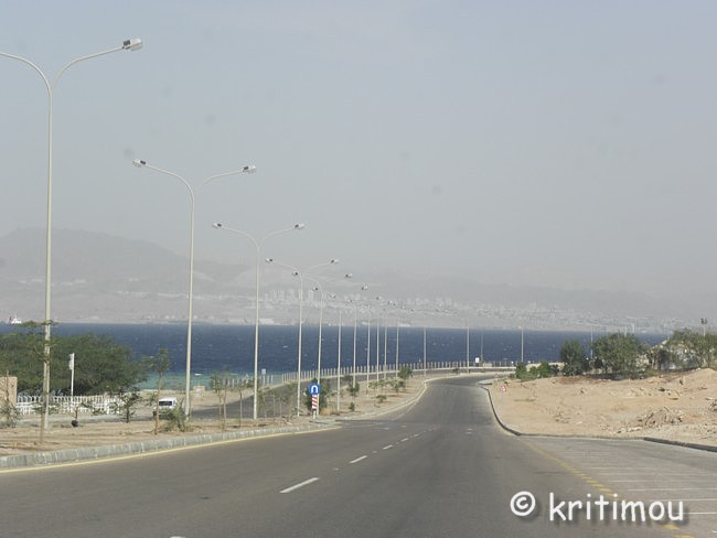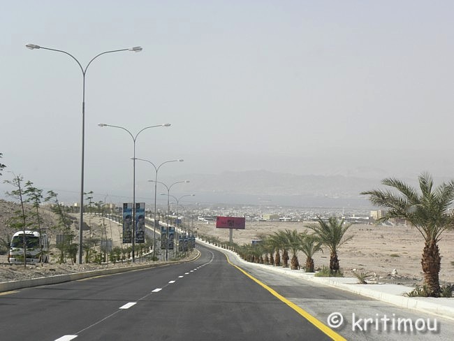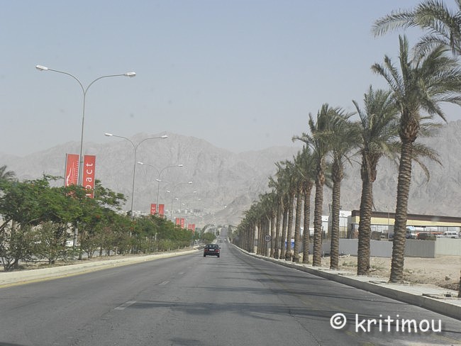 Immer näher rücken die Felsen, in denen man eigentümliche Maserungen sieht. Sind das offen liegende Erze? ![]() ![]() Auf der rechten Seite erkennt man die Versuche, die Autobahn gegen herabstürzende Gesteinsbrocken zu schützen. Hänge wurden teilweise plattgewalzt, breite Regenrinnen sollen herabstürzendes Wasser ableiten, wahrscheinlich unter der Straße hindurch in das breite Flussbett auf der linken Seite. Die Erde im Hintergrund sieht aufgewühlt aus, doch beim zweiten Hinschauen dürfte es sich auch eher um ein natürliches, trockenes Wadi handeln, mit denselben Schutzmaßnahmen gegen Wassermassen und Erdrutsche wie auf der anderen Straßenseite. Und auch zu Recht, denn jenseits des Wadis verlaufen die Schienen der Aqaba Railway Corporation (einem Abzweig der Hedschasbahn zwischen Medina und Damaskus), deren Züge abgebautes Phosphat aus der jordanischen Wüste zur weiteren Verarbeitung und Verschiffung nach Aqaba bringen. ![]() Nachdem wir die weit vor Aqaba gelegene Zollstation passiert haben (insbesondere LKWs werden unter die Lupe genommen), erkennen wir vor uns eine Gruppe von Radfahrern, Touristen, die auf der Autobahn ebenfalls gen Aqaba rollen. ![]() Noch vor der Stadtgrenze von Aqaba informiert ein Schild, dass man sich in der Aqaba Special Economic Zone (ASEZ) befindet, die für den Ausbau der Region geschaffen wurde. Tourismus, Industrie, Dienstleistungen, Handel, Logistik, Transport, aber auch Bildung und Gesundheitswesen sowie Umwelt sind die zu entwickelnden Themenfelder. Die Wirtschaftszone ist eine privatwirtschaftliche Entwicklungsinitiative für die Maximierung von zollfreien und steuerbegünstigten Aktivitäten auf dem nur 27 Kilometer langen Küstenstreifen Jordaniens. Eine eigens geschaffene Authority entwickelt und koordiniert die Aktivitäten insbesondere in Bezug auf den Seehafen, den Flughafen und den historischen Teil von Aqaba. Vorgesehen ist die Entwicklung in einem Zeitraum von 2001 bis 2020, mit der finanziellen Gewichtung von 50 % im Tourismussektor, 30 % bei verschiedenen Dienstleistungen, 13 % in der Schwer- und 7% in der Leichtindustrie an. Aqaba, dank seiner strategisch günstigen Lage zwischen Asien und Afrika schon seit vielen Jahrhunderten ein wichtiger Stützpunkt, auch für Reisende nach Mekka, hat sich seit seiner Zerstörung im Ersten Weltkrieg dank finanzieller Hilfen zu einer modernen 100.000-Einwohner-Stadt gemausert. Beispielsweise wurden zwischen den Jahren 2002 bis 2006 im Rahmen des EU-Programms IS-ASEZA die Bereiche Tourismus, Handel, Umwelt und Nahrungslabors mit 10 Millionen EUR gefördert. Zwei längerfristige Vorhaben mit einem Vielfachen dieses Volumens sind in den letzten 2 Jahren gestartet worden: Marsa Zayed der Gesellschaft Maabra aus Abu Dhabi und Saraya Akaba der gleichnamigen libanesischen Real Estate Development Company. Im Marsa-Zaved-Projekt will man innerhalb der nächsten 30 Jahre durch Verlegung des Hafens näher zur saudiarabischen Grenze hin auf einer dadurch entstehenden Freifläche des alten Hafengebietes von 3,2 Millionen qm Anlagen mit über 3.000 Hotelzimmern bauen mit allem, was das touristische Herz angeblich begehrt: Geschäfts- und Freizeitzentren und einer Anlegestelle für Kreuzfahrtschiffe. Darüber hinaus rechnet man in den nächsten Jahren mit der Verdoppelung der Bevölkerung und damit auch einer enormen Nachfrage nach Wohnraum. 30.000 Villen, Stadthäuser und Appartement-Türme sollen entstehen. Das Budget beträgt 10 Milliarden Dollar. Das Saraya-Akaba-Projekt zielt mit einem Budget von 1 Milliarde Dollar auf den Bau einer gigantischen Tourismusanlage auf mehr als 630.000 qm an der Nordspitze des Meeresausläufers. 756 Wohneinheiten, Appartements, Hotels, und ebenfalls Einkaufs- und Vergnügungseinrichtungen sollen auf einer künstlichen Lagune entstehen. Auch schon vor einhundert Jahren war der wichtige Hafen Aqaba heiß umkämpft: „Durch den aufwirbelnden Staub bemerkten wir, dass Aqaba in Ruinen lag. Die wiederholten Beschießungen durch die englischen und französischen Kriegsschiffe hatten den Ort zu einem Schutthaufen gemacht. Die Häuser ringsum standen in Trümmern, trübe und kümmerliche Überbleibsel (...) Seit Monaten war Aqaba das Ziel und der einzige Gegenstand unseres Wollens gewesen.“ So beschreibt T.E Lawrence („Lawrence von Arabien") seinen Einzug in Aqaba, aber auch die leeren Gefühle gepaart mit Hunger nach der Einnahme der Stadt (1917 während der Arabischen Revolte gegen die Osmanen). Was für eine Entwicklung: Die zerstörte Stadt vor hundert Jahren einerseits, und die milliardenschweren Investitionsprojekte der heutigen Zeit! Der Autor von Kurt Schröders Reiseführer bemerkte noch 1956: „Hinter einer Schlucht tauchen die ersten Barackenlager britischer Truppen auf. Rechts ein großes Benzindepot (...), durch dessen Umzäunung die Straße an Akaba vorbei zum Meer führt. Der Strand ist mit Resten weißer und roter Korallenzweige, Seeigeln und Muscheln übersäht.“ Und dann, überhaupt nicht mehr an das heutige Nachhaltigkeitsprinzip angepasst, meint er: „Mit einem Hammer kann man die Korallenstämme losschlagen, die dicht unter dem Meeresspiegel wuchern.“ (S. 179) Heutzutage würde man dafür wahrscheinlich ins Gefängnis wandern. Bei unserer Einfahrt nach Aqaba erwartet uns eine sehr saubere Stadt. Palmengesäumte Straßen führen zunächst an wenigen ärmlicheren Straßenzügen vorbei, die kurz darauf von neuen Wohnsiedlungen abgelöst werden. Schon bald erhält man einen Blick über die Stadt, das sich verjüngende Wadi Araba und das israelische Eilat im Hintergrund. ![]() ![]() Da wir nicht wissen, wo sich unser Hotel befindet, orientieren wir uns zunächst in Richtung Innenstadt und landen hinter einem großen Kreisel im Hotelviertel. Dort sehen wir ausschließlich die großen, bewachten Kästen der Megaketten. Kein Mensch kennt unser Hotel, das der Beschreibung nach vergleichsweise klein sein soll. Irgendwann finden wir doch noch jemanden, der un
