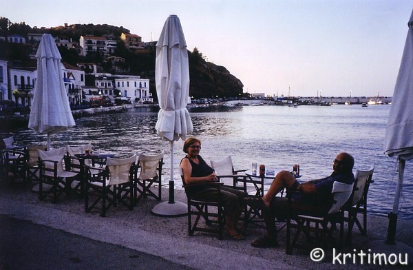 Abschied von Ikaría Wir haben uns entschlossen, schon am frühen Abend nach Evdhilos zu fahren, obwohl unsere Fähre, die Sardinia Vera der Kallisti (das größere Schiff) erst kurz vor 22.00 Uhr ablegen soll. Der Taxifahrer steht kurz vor 18.00 Uhr auf der Matte. Unsere Vermieter verabschieden uns zünftig. Ich erhalte noch Ableger der Nichtoloúloudho. Bei den Verabschiedungswünschen kaló taxídi, kaló chimóna, meint Kyría Túla: „Vielleicht werdet ihr beim nächsten Besuch nur noch einen von uns antreffen.“ Und Kapetán Dimítris setzt noch einen drauf: „Vielleicht ist einer von uns dann auf dem Mars.“ Ewig sollen sie leben! Der Taxifahrer redet nicht nur ununterbrochen, sondern auch noch sehr schnell, fährt jedoch ganz gemütlich und bietet an, überall anzuhalten, wo auch immer wir es wünschen, zum Beispiel zum Fotografieren. ![]() Befreit von unseren Trolleys, die wir im Praktorío abgestellt haben, freuen wir uns auf einen kleinen abschließenden Spaziergang im Hafen von Evdhilos, wo zwei Männer dabei sind, ihr Angelglück zu versuchen. Die Baustelle für die neue Straße ist belebt, nächstes Jahr wird sicherlich alles fertig sein. Ein Teil der Stadt ist am friedlichen Vorabend in goldenes Licht getaucht. Langsam füllen sich die Hafencafés, wo auch wir noch ein wenig sitzen und innerlich langsam dieser wunderschönen Insel mit ihren freundlichen Einwohnern und der Herzlichkeit, die uns überall begegnet ist, Lebewohl sagen. ![]() Gegen 21.00 Uhr legt die Fähre der Hellenic in Minutenschnelle an, entlässt PKWs, LKWs und Passagiere direkt in die bereitstehenden Taxen an der Mole. Mit den Schiffsschrauben am Bug und am Heck gelingt eine Drehung auf der Stelle, und wenige Augenblicke nach dem Hochfahren der Landeklappen ist die Fähre hinter der nächsten Landzunge verschwunden. ![]() Unser Schiff hat Verspätung. Wir vertreiben uns die Zeit in der Nähe der Anlegestelle. Bei einem Spaziergang bis zum äußersten Ende der Mole auf der Ufermauer habe ich Bekanntschaft mit einigen Stolperfallen gemacht. Geht das jetzt wieder los! Nur knapp entkomme ich einem Sturz über eine Betonfalte, während ich mal wieder in die Luft geguckt habe. An einer anderen Stelle rauschen die Meereswellen in der Dunkelheit mit einer solchen Wucht heran, dass das Wasser für jeden, der sich dort gerade aufhält, erfrischend über die Begrenzung spritzt. Dabei ahnen wir, dass die Beauforts sich keinesfalls, wie erhofft, beruhigt haben, sondern ganz im Gegenteil noch an Kraft zugenommen haben. Bin wirklich gespannt, wie es uns gleich auf der Fähre ergehen wird. Allerdings haben uns Bekannte in Armenistís beruhigt, als sie erfuhren, dass wir eine Passage auf der größeren und langsameren Fähre gebucht haben. Endlich, mit eineinhalbstündiger Verspätung, ist die unter italienischer Flagge fahrende Sardinia Vera in Sicht. Das Anlegemanöver nimmt einige Zeit in Anspruch, ganz anders als bei den schnellen Expressfähren. Die LKW-Fahrer, die auch im Hafen gewartet haben, sind mittlerweile sehr ungeduldig. Ich kann mir vorstellen, dass man bei der geplanten frühmorgendlichen Ankunft in Piräus dem schlimmsten Berufsverkehr zu entkommen hoffte, doch dies ist jetzt wohl hinfällig. Die Möglichkeit außer Acht lassend, unser Gepäck lose irgendwo auf dem Autodeck zurücklassen zu können, hieven wir die schweren Koffer über schmale Treppen drei Stockwerke bis hinauf auf das Pullmanndeck. Erst hier gibt es eine entsprechende Gepäckablage. Völlig geschafft suchen wir uns einen Platz im nur mäßig besetzten Pullmannraum, der mit Teppichboden ausgelegt und mit sehr breiten Sitzen ausgestattet ist. Noch haben wir nicht abgelegt. Bis zum obersten Deck hinauf inspizieren wir das Schiff; als erstes fallen uns die vielen Rettungsboote und der blank geschrubbte Boden auf. Am Heck stehend erleben wir dann den Augenblick, als die Fähre ganz gemächlich die Klappen hochfährt, eine Drehung vollführt und dann Kurs auf Piräus nimmt, denn ein Zwischenstopp ist nicht vorgesehen. Unser Aufenthalt auf Ikaría ist zu Ende, wie schade. Noch lange sitzen wir an einer windgeschützten Stelle an Deck und lassen die Lichter der langgestreckten Insel an uns vorbeiziehen, erahnen in der Dunkelheit die Orte, die wir besucht haben und lassen unseren Aufenthalt noch einmal bruchstückhaft vorüberziehen. „Erinnerst du dich…?“ „Wie hieß noch mal der Ort…?“ „Hier kommen wir wieder her!“ Die Fähre schaukelt tatsächlich, doch durch ihre Größe empfinden wir dies nicht als ungenehm. Erst später, mitten in der Nacht, wird der Wellengang heftiger, doch haben wir uns bereits, wie fast alle anderen, auf dem Boden, zwischen den dunklen Sitzreihen, ausgestreckt und versuchen, ein wenig Schlaf zu erhaschen. Irgendwie üben die Schiffsbewegungen eine beruhigende Wirkung auf mich aus. Erst ein tiefes Wellental, dann ein weiteres dieser Art, gefolgt von einem kurzen Ruckeln, dann geht es wieder eine Weile geradeaus. Nach einigen Stunden Schlaf erreichen wir in den frühen Morgenstunden recht entspannt Piräus. Noch haben wir nicht angelegt, noch werden im Hafenbecken verschiedene länger dauernde Manöver durchgeführt, als wir bereits mit unserem Gepäck an der Ausstiegsrampe stehen. Zwei Matrosen sitzen noch ein paar Minuten auf ihren Stühlen am Eingang, müde, aus dem Schlaf gerissen. Ein halbleerer Frappé-Becher steht in einer Nische. Es riecht nach Maschinenöl. Irgendwann fängt es an zu rappeln und zu dröhnen, das Schiff vollzieht langsam sein Wendemanöver. Mit halb geöffneter Klappe werden die wenigen Meter bis zum Kai zurückgelegt. Die beiden Seeleute wickeln die dünneren Seile, an denen die Anlegetaus befestigt sind, fachgerecht auf, um sie gleich an Land zu werfen. Wieder in Piräus Gleich nach der Landung gehen wir von Bord und stellen fest, dass wir sehr zentral angelegt haben. Direkt gegenüber befindet sich noch im Hafenbereich ein schattiges Café, wo drei Schlückchen Filterkaffee 3,