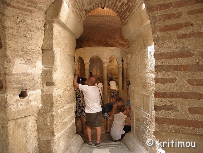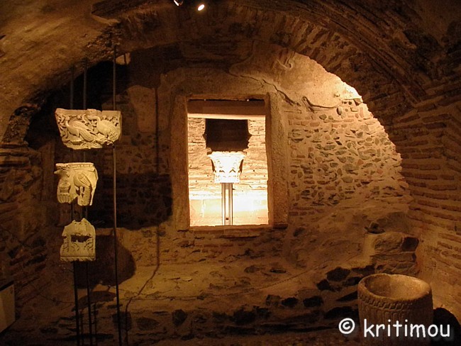 Zum Frühstück sind wir in ein Schnellrestaurant um die Ecke gegangen und haben uns an einem der wenigen Tischchen draußen niedergelassen. Der Bohnenkaffee schmeckt vorzüglich, der Toast weniger, aber Alex genießt seine soeben hergestellte Bougátsa in vollen Zügen. Bis zur Autoübergabe ist noch jede Menge Zeit, in der wir die Kirche des Agios Dimítrios, des Stadtpatrons von Thessaloníki, wieder einmal besuchen können. Alex war hier schon häufiger, ich erst einmal (2009). Die Hauptkirche Thessaloníkis wird am frühen Vormittag in goldenes Licht taucht, als die Sonne durch das gelbe Fensterglas in der Apsis scheint. Begleitet wird unser Besuch von gregorianischen Gesängen vom Band. ![]() ![]() ![]() Wir zünden alsbald unsere schmalen Kerzen an, die uns Roma-Frauen im Außenbezirk der Kirche gegen einen Winzbetrag aufgeschwatzt haben („Von dem Geld kaufen wir Brot für uns“). ![]() Das frühere Fotografierverbot im Kellergeschoss ist aufgehoben worden. Nacheinander betreten verschiedene Reisegruppen das Gewölbe der christlichen Urkirche, machen ihre Fotos und gehen wieder. Wir bleiben noch länger, lesen die Tafeln, bewundern die Ausstellungsstücke und stellen uns vor, wo die Widerstandskämpfer wohl gesessen haben, als sie die ahnungslosen deutschen Besatzer im Zweiten Weltkrieg belauschten. Es gibt da einen verschlossenen Raum, der unter dem Altar liegen müsste, vielleicht war es hier, wo man sich versteckte. ![]() ![]() ![]() ![]() ![]() ![]() ![]() ![]() Noch einmal schlendern wir durch den prachtvollen Innenraum der heutigen Kirche im Erdgeschoss und bewundern den Gesamteindruck: die Säulen aus verschiedenfarbigem Marmor, die Ikonen und alten, wertvollen Mosaike und das wunderschöne Licht.