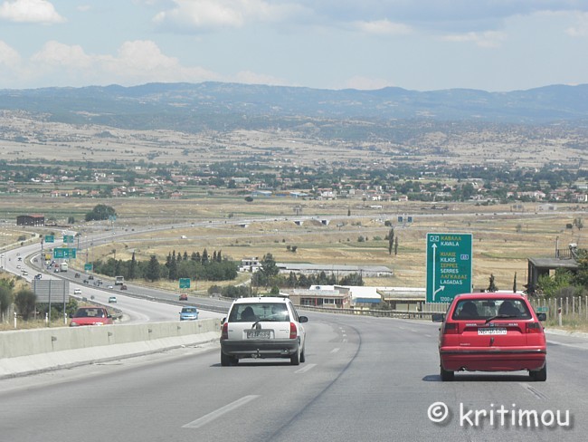 In Athen gibt es zwei Haltestellen für den Bus nach Thessaloníki, der laut Fahrplan 2011 alle ein bis zwei Stunden auf dieser Strecke verkehrt. Die eine befindet sich in Kifissiá (also ziemlich weit außerhalb, die andere auf dem Pédio Aréto (Marsfeld) in der Nähe des Archäologischen Museums. Von unserem Hotel (in Monastiráki) aus fährt der Stadtbus 35 direkt dorthin (Haltestelle Agios Vassílios). Man geht in Fahrtrichtung ein paar Meter bis zur nächsten Kreuzung (ca. 200 Meter) und biegt dort links ab. An der nächsten Ecke befinden sich dann das unscheinbare Praktorío und die Haltestelle für die Busse. Bei unserer Ankunft erwerben wir die Tickets (jeweils 42 Euro) und haben noch soviel Zeit, dass wir in Ruhe einen Kaffee trinken können. Das Gepäck deponieren wir einstweilen im Praktorío. Im Park vor dem Archäologischen Museum zahlen wir für den Kaffee die bekannten Athener Preise (4,50 Euro). Dafür können wir den Morgen stimmungsvoll und in aller Ruhe angehen lassen. ![]() ![]() ![]() ![]() Von Athen nach Thessaloníki Um 10.30 Uhr fährt der Bus pünktlich los. Zwei Fahrer sind an Bord, die sich auf der Fahrt regelmäßig abwechseln werden. In Kifissiá wird es voll, alle Plätze sind jetzt besetzt. Fast ausschließlich Einheimische sind an Bord. Langsam wird es richtig heiß in dem Doppeldecker, als die Outskirts von Athen an uns vorbeifliegen. Riesige Gewerbegebiete beheimaten dieselben globalen Firmen wie auch in anderen Großstädten: Ernest & Young, Novartis, Bo-Frost, Metro, Zentis, Nokia, Siemens Network, Coca Cola, Toyota, Smart und andere. Dazwischen auch einige einheimische Firmen. Kurzzeitig erleben wir einen Stau, es kann nur im Schritttempo gefahren werden, doch löst er sich schnell wieder auf. Nach Überquerung eines Hügels passieren wir die erste Mautstelle, und zwar ohne anzuhalten. Sicherlich gibt es einen Sondertarif, oder die Autobahnbenutzung ist für den öffentlichen Verkehr sogar kostenlos. Auf großflächigen Tafeln wiederholt sich immer wieder die Werbung für eine griechische Online-Zockerbude. Nachdem der Großraum Athens hinter uns liegt, durchqueren wir landwirtschaftlich genutztes Gebiet; Olivenhaine, soweit das Auge reicht. Rechts begleitet uns eine ganze Weile lang die Insel Evia, vom Festland getrennt durch den Nord-Evia-Kólpos. Noch mehrere Mautstellen passieren wir; das wäre eine teure Autofahrt mit dem Mietwagen geworden (das hatten wir nämlich ursprünglich vor.) Kurz hinter Lamía halten wir zu einer zwanzigminütigen Pause an einer Raststätte. Unzählige süße Leckereien zieren die Auslagen, man kann kaum widerstehen. Um 13.00 Uhr strömen die Passagiere bereits zum Bus, um wie angekündigt wieder aufzubrechen. Als die Fahrer wenige Minuten später Platz nehmen, füllt sich das Gefährt in Windeseile, und schon düsen wir wieder über die Autobahn, rechts und links flankiert von einem rosa blühenden Oleanderband. Linkerhand, auf halber Höhe kann man Bautätigkeiten erkennen, Tunnel durch die Hügel sind bereits angelegt, Betonpfeiler für Brücken ebenfalls. Wahrscheinlich wird hier eine schnurgerade Betonpiste entstehen, die den Autoverkehr in Nord-Süd-Richtung noch schneller fließen lässt. Plötzlich hält der Bus am Fahrbahnrand. Einer der Fahrer steigt aus, geht nach hinten, schaut sich den Motor an. Dann steigt auch der zweite Fahrer aus. Es scheint eindeutig: mit diesem Gefährt geht es nicht mehr weiter, der Bus ist kaputt. Wir werden gebeten, alle auszusteigen. Ohne Belüftung kann man es im Bus bei diesen Temperaturen nicht aushalten. Der Fahrer ermahnt uns laut und eindringlich, auf keinen Fall die Fahrbahn zu betreten. Stattdessen stehen wir an der Leitplanke, zum Glück im Schatten eines kleinen Pinienwäldchens. Ein Ersatzbus ist bereits geordert. Wie sich bei genauer Betrachtung herausstellt, ist der Keilriemen gerissen; auch die Kühlung funktioniert nicht mehr. Eine kleine Ewigkeit warten wir auf die Weiterfahrt, doch die Fahrgäste sind gut gelaunt und nutzen die Zeit für endlose Telefonate und einige Damen auch zum Schaulaufen. Endlich, nach über einer Stunde, kommen zwei Ersatzbusse. In Windeseile wird das Gepäck umgeladen und wir nehmen wieder Platz. Der Fahrer, ein junger Mann, der alles vollendet im Griff hat, gibt richtig Gas. Unter den Damen ist mittlerweile Unruhe aufgekommen, als wir nochmals für fünf Minuten anhalten. Auf der Weiterfahrt kommt eine nach der anderen nach vorne und hält dem Fahrer ein unnötiges Gespräch, meckert auch hinterher noch herum. Als ob wir dadurch schneller am Ziel wären! Der Fahrer lässt sich nichts anmerken. Er führt etliche Telefonate, organisiert auch noch andere Fahrten, fährt aber trotzdem sehr sicher. Wir tippen auf den Sohn des Eigentümers des Unternehmens. Tatsächlich sind die Busse auch nicht grün, wahrscheinlich ein privates Unternehmen, das im Auftrag von KTEL unterwegs ist. Der Junge ist wirklich gut. Entspannt lehnen wir uns zurück und lassen die Landschaft wieder an uns vorbeiziehen. Wolken sind aufgezogen, man mag es kaum glauben nach der Hitzeschlacht der letzten Tage. Braune, bereits abgeerntete Getreidefelder wechseln sich jetzt mit grünen Feldern ab. Vereinzelt schlanke Zypressen, wahrscheinlich bei Kirchen oder Friedhöfen. Herrlich, die mediterrane Landschaft und über weite Strecken die Sicht auf das tiefblaue, ägäische Meer. Von links oben kommt jetzt eine Pipeline in Sicht. Sie führt geradewegs nach unten, bis zum Meer, wo ein größeres Gebäude (eine Fabrik?) steht. Es würde mich interessieren, was durch diese Pipeline transportiert wird. Nach einer Weile erreichen wir den Abzweig nach Vólos, zumindest die Industrial Area. Die Stadt selbst bleibt weit entfernt. So wie es aussieht, wird der Bus ohne weiteren Haltepunkt durchfahren. Zwischendurch klingeln die Handyapparate im Bus, viele mit dem Wallander-Klingelton. Alle paar Kilometer wird durchgegeben, wo man sich gerade befindet. Mittlerweile befinden wir uns schon