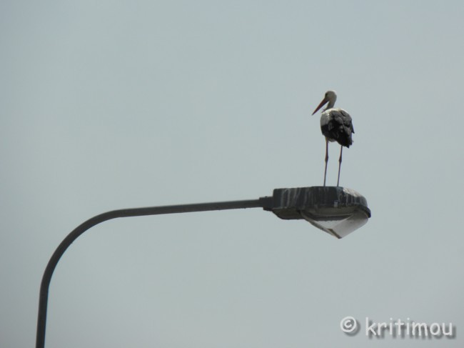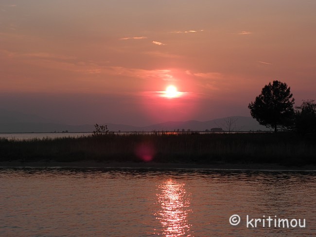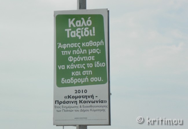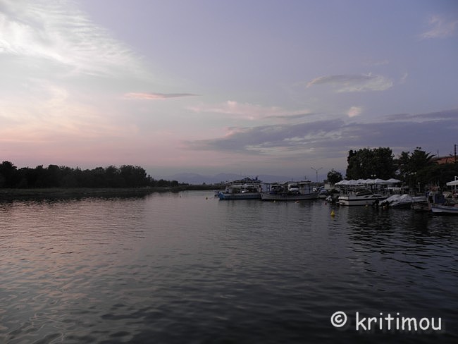 Gute Reise! Verlässt du unsere Stadt sauber? Kümmere dich auch auf deinem Weg darum. 2010 – Komotiní grüne Gemeinschaft / Jahr der Information und Sensibilisierung der Bürger der Gemeinde Komotiní Ganz fest haben wir uns vorgenommen, beim nächsten Mal länger hier in Westthrakien zu bleiben, nicht nur wegen der persönlichen Bindungen, sondern auch, weil es hier einfach so schön und abwechslungsreich ist. Und sehr grün. ![]() Als wir uns auf unserem Weg nach Keramotí dem Natur- und Vogelschutzgebiet des Néstos nähern, erinnern wir uns, dass wir ja auch noch eine Kanufahrt auf dem Fluss machen wollten, selbst dazu hat die Zeit nicht mehr gereicht. Dieses Erlebnis wollen wir auf jeden Fall später einmal nachholen. Einige der großen Vögel begegnen uns auch hier. ![]() Bei Keramotí angekommen werden wir schon sehnlichst erwartet. Also packen wir schnell unsere Badesachen, springen wieder ins Auto und fahren die kurze Strecke zum Strand des Offizierskasinos. Dieser Küstenabschnitt ist ob seiner vorgelagerten Sandbänke sehr familienfreundlich. Wenn man circa zwanzig Meter ins wadentiefen Wasser hinein gewatet ist, erreicht man eine dieser Sandbänke, steigt wieder auf, wandelt einige Meter quasi über dem Meer, um gleich dahinter endlich einmal bis zum Hals ins Wasser eintauchen zu können. Aufgrund der geringen Tiefe ist das Wasser lauwarm. Ein letztes Mal frönen wir dem Badevergnügen ganz ausgiebig. Am Nachmittag fahren wir zurück, essen ein paar „Kleinigkeiten“, während die Kinder sich ihre Musikinstrumente (Gitarre und Bouzoúki) schnappen, um für uns ein kleines Konzert zu geben. Wir verplaudern die Zeit, schöner könnten wir unseren letzten vollen Urlaubstag kaum verbringen. Am frühen Abend checken wir im Philoxenía-Hotel ein, einer alt eingesessenen Unterkunft im Hafen von Keramotí. Mit unserem sehr gut ausgestatteten Zimmer sind wir superzufrieden, der Preis stimmt. Zunächst schlendern wir ein wenig durch den kleinen Hafen, der schon in warmes Licht gehüllt ist.