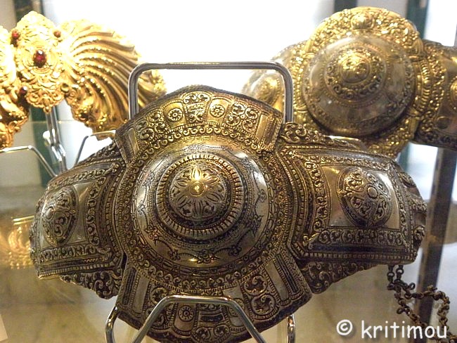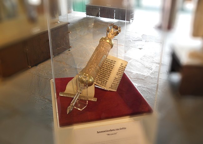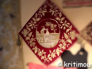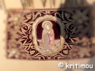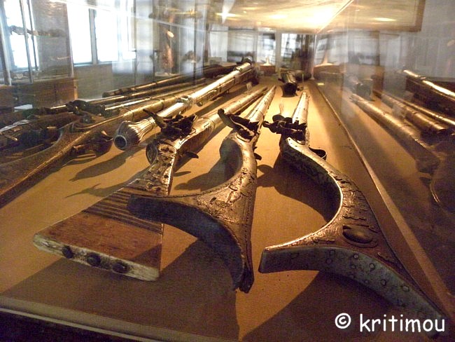 ![]() Zu den Exponaten der griechisch-christlichen Gemeinde gehören Gewänder verschiedener Bevölkerungsgruppen (wie den Sarakatsáni, Soulióten und Frauen aus Zagóri), Stoffe mit wertvollen Stickereien aus der Gegend von Bursa, aus Syrien und Persien aus dem 16. bis 18. Jahrhundert und Waffen.