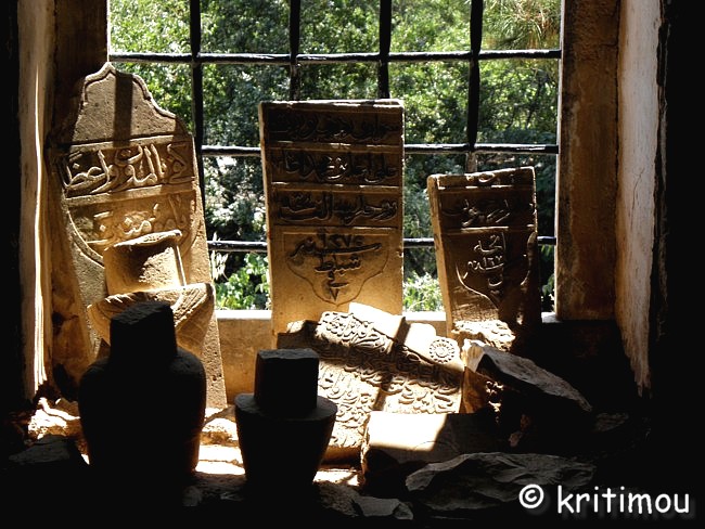 ![]() Auf der Rückseite des Gebäudes befindet sich ein Friedhof aus osmanischer Zeit, mit alten Gräbern und dem Aslan-Pascha-Mausoleum. [Wohlgemerkt: Aslan Pascha oder Aslan Aga, der einhundert Jahre vor Ali Pascha lebte, wenn man auch Ali Pascha den Beinamen Aslan (Löwe) verlieh.]
