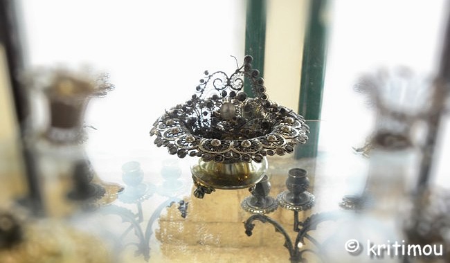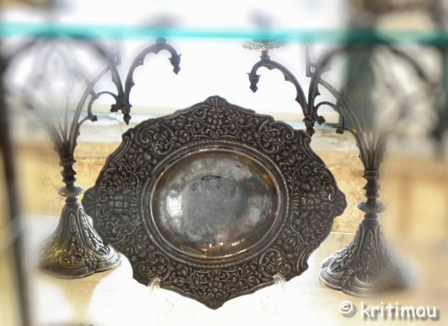 ![]() Eines der wichtigsten Kulturgüter über die Jahrhunderte hinweg, bis heute, ist die Kunst der Silberverarbeitung, für die Ioánnina weit über die Grenzen hinweg bekannt war. Die Silberschmiede Ioánninas wurden immer „Goldschmiede“ genannt, obwohl sie nie mit Gold, sondern ausschließlich mit Silber arbeiteten. Der Werkstoff kam in osmanischer Zeit vor allem aus England, später aus Lavrio/Attika. Heute wird er wieder aus dem Ausland importiert. Die Schmiede bedienten sich verschiedener Techniken der Silberverarbeitung, wie das Gravieren, Filigranarbeiten, das Emaillieren, Niello oder die Bearbeitung mit kleinen Hämmerchen.