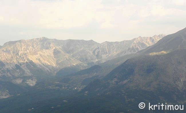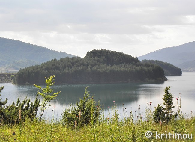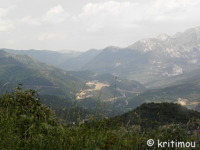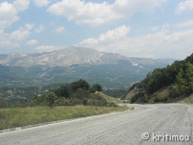 Nach unserer Höhlenbesichtigung sind wir immer noch voller Tatendrang. Kurzfristig beschließen wir, einen Ausflug in die Welt des Pindosgebirges zu unternehmen. Es gibt ein Bild, das fest in meinem Kopf verankert ist und dass ich Alex unbedingt zeigen möchte: Vor 15 Jahren bin ich eines frühen Sommermorgens, kurz nach Sonnenaufgang, mit dem Bus von Ióannina zu den Metéora-Klöstern nach Kalambáka gefahren. Die Straße führt auf der Ioánnina gegenüber liegenden Seeseite in Serpentinen hangaufwärts und verschwindet dann in den Bergen. Der Blick damals von oben über den noch halb im Nebel liegenden See, mit den sich spiegelnden, rötlichen Sonnenstrahlen, bleibt unvergessen! Auch zu anderen Tageszeiten sollte man sich das beeindruckende Panorama der Stadt am anderen Seeufer nicht entgehen lassen, das in den See hineinragende Karree mit dem Kastroviertel, die Insel und die grüne Schilfumrandung der östlichen Seeseite. ![]() Bereits auf halber Strecke hügelan beginnt der unendliche Kiefernwald. Bäume mit leuchtenden, hellgrünen Nadeln säumen den Weg. Irgendwann verschwindet die Sicht auf den See, und wir tauchen ein in die faszinierende Bergwelt des Píndos-Gebirges mit seinen blanken Zweitausendern, das sich in Nord-Süd-Richtung durch den nördlichen Teil Griechenland zieht und dem Epirus seine Abgeschiedenheit beschert. Zunächst verläuft die Straße (E 92) eine Weile auf ebener Fläche, dann taucht sie wieder etwas hinab, um später in vielen Windungen wieder bergan zu steigen.