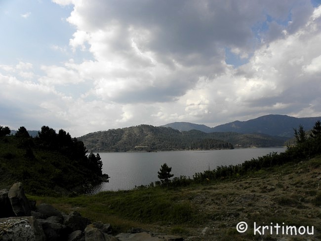 ![]() Ein PKW fährt vor uns her und wird wenig später von einem Polizisten gestoppt, der sein ziviles Fahrzeug auf der Straße, direkt neben dem Aóos-Stausee, geparkt hat. Beide weisen sich aus, der PKW-Fahrer kann weiter fahren. Wir werden erst gar nicht nach unseren Pässen gefragt. Sicherlich hat man unser Kennzeichen in dieser abgelegenen Gegend bereits als zu einem Autovermieter zugehörig gescannt. ![]() Mit dem Polizisten kommen wir ins Gespräch, auch er war heute bei der Jagd nach den Gangstern dabei. Einen habe man festnehmen können, den anderen würde man auch noch schnappen. Ich frage mich, was er machen würde, wenn er hier in der Einöde, allein auf weiter Flur, diesem bewaffneten Mann begegnen würde. Er habe Kinder zu Hause, sagt er, und der Job sei an Tagen wie diesem besonders schwer. Während Alex sich weiter angeregt mit dem Mann unterhält, schaue ich mir die Umgebung an. Der Aóos-Stausee bedeckt eine Fläche von ca. 9 qkm, liegt auf etwa 1.350 Metern Höhe und sammelt mit einem Fassungsvermögen bis zu 180 Millionen Kubikmeter das Wasser aus den benachbarten Bergen. In einem 1990 fertig gestellten Kraftwerk („Pigai Aoos“) wird Energie erzeugt, bevor man das Wasser nach Nordwesten entlässt, wo der Fluss Aóos die Brücke von Kónitsa unterquert, unter anderem das Wasser des Voidomátis (der durch die Vikos-Schlucht fließt) aufnimmt, um schließlich den größten Teil seiner Reise zur Adria durch Albanien unter dem Namen Vjosa zurückzulegen.