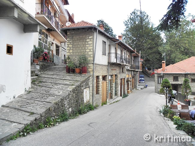 ![]() Vom Ortsrand aus schlendern wir schließlich langsam wieder zurück. Eine sehr angenehme Atmosphäre verströmt das Dorf und wäre sicherlich einen längeren Aufenthalt wert, auch im Winter. Als ich Métsovo 1997 ebenfalls für ein paar Stunden besuchte, sprach mich ein älterer Mann an. Wir plauderten ein wenig und ich fragte ihn, wie es im Winter wohl hier sei, sicherlich sehr kalt. Er antwortete lachend: Im Winter trinken wir Snaps!