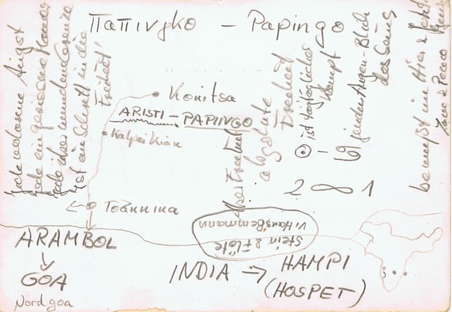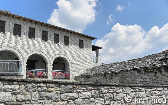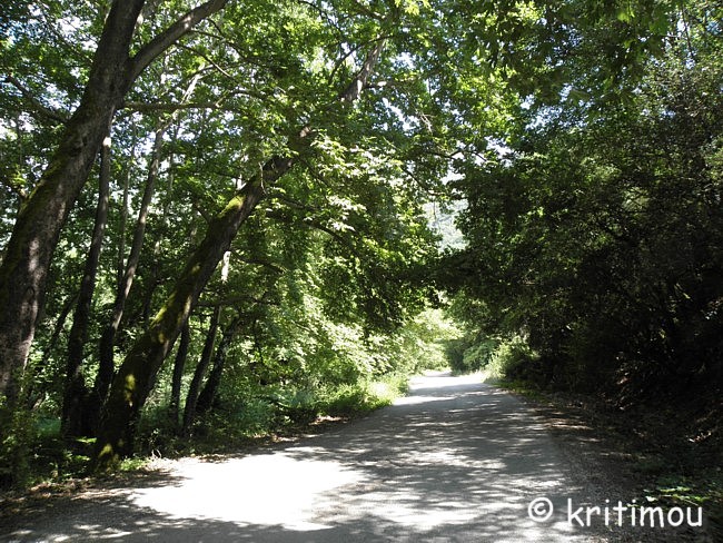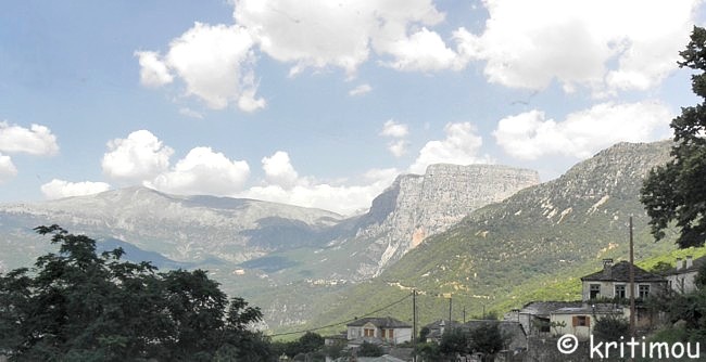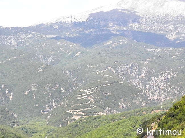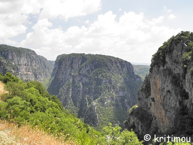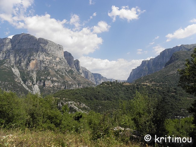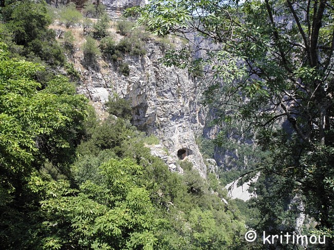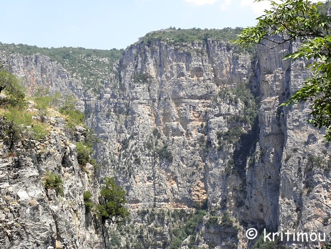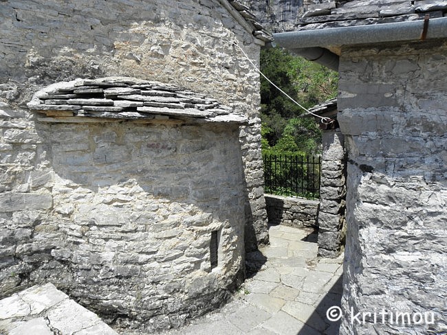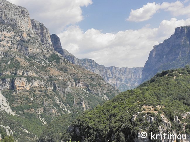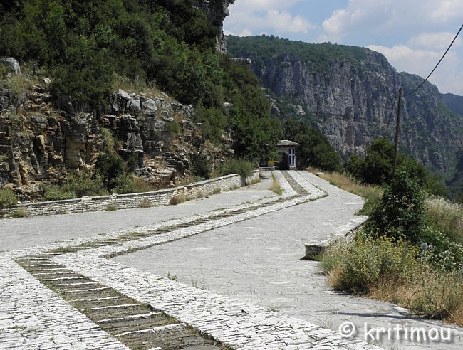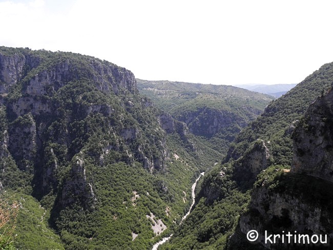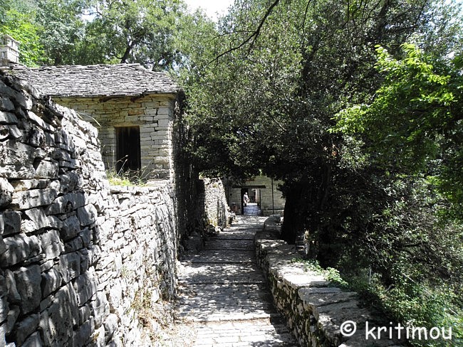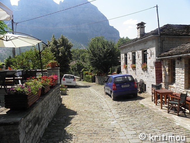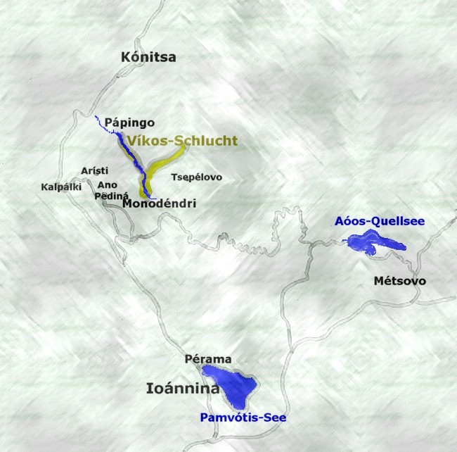 On the road again...voller Tatendrang und gespannt, was uns weiter nördlich, in West-Zagóri, erwarten wird, checken wir früh morgens aus dem Hotel in Ioánnina aus und nehmen, wie gestern, die Straße in Richtung Kónitsa. Im Gegensatz zum gestrigen Tag ist die Straße wieder offen. ![]() Den ersten Abzweig nach Monodéndri, unserem ersten Ziel für heute, verpassen wir und biegen stattdessen weiter nördlich nach Kalpáki ab, von wo eine schmale Asphaltstraße ebenfalls nach Monodéndri führt. Langsam geht es durch die schöne grüne Landschaft bergan. Verkehr begegnet uns kaum auf der mit bunten Wiesenblumen gesäumten Straße. Schließlich durchqueren wir eine landwirtschaftlich genutzte Hochebene und passieren das Dorf Káto Pedhína (Untere Weide). Noch einige Kurven bergan und wir erreichen Monodéndri, eines der am ersten touristisch entwickelten Dörfer in West-Zagoriá (neben Pápingo und Tsepélovo), mit vielen Unterkünften und etlichen Lokalen. Schon vor 15 Jahren prophezeite mir ein Einheimischer, dass diese Gegend so viel touristisches Potential bietet, dass man einfach investieren musste! Der Ort Monodéndri besitzt außer seiner typischen zagorianischen Stein-Bauweise einen anderen Schatz: die Nähe zum Kloster Agia Paraskeví, dem „balkoni“, von wo aus man eine famose Sicht in die Víkos-Schlucht hat. Unser Auto parken wir in einer langen Schlange an der Hauptstraße, am Ortseingang. Direkt gegenüber steht eines der vielen renovierten Herrenhäusern, mehrstöckig, komplett aus Stein. ![]() Man bietet Tirópites an, eine besondere Spezialität des Ortes. Vor allem brauchen wir dringend einen Kaffee! Für zwei Frappe und eine Pitta zahlen wir denn auch stattliche Touristenpreise, insgesamt 10 Euro. Hier werden wir ganz bestimmt nicht mehr einkehren. Bevor wir zum Kloster gehen, schlendern wir noch ein wenig durch das Dorf, über die alten Steinwege, vorbei an den kleineren, aber auch mehrgeschossigen Häusern mit ihren Steindächern. Die Renovierung muss ein Vermögen gekostet haben. Uns gefallen die alten, holprigen Gassen, durch die jeder Rollkoffer sein jähes Ende findet. ![]() alter Weg ![]() neuer Weg - selbes Prinzip ![]() alter und neuer Weg ![]() Schließlich biegen wir ab auf den Steinweg zum Kloster. ![]() Als ich 1997 das erste Mal dorthin ging, wurde dieser Weg gerade verlegt. Und genau in jenem Jahr erhielt die Víkos-Schlucht auch ihren Eintrag ins Guinness-Buch der Rekorde als mit „900 Metern tiefste Schlucht der Welt“. Um ehrlich zu sein: ob am tiefsten, längsten oder sonst wie, diese Rekorde interessieren uns nicht und sind auch nicht ausschlaggebend für unseren Besuch. Vielmehr ist es die famose Aussicht auf diese von der Natur geküssten Landschaft. Etwa einen Kilometer lang verläuft dieser Zugangsweg nun jenseits des Ortsausgangs in Richtung Schlucht. Schatten gibt zu dieser Uhrzeit kaum. Kurz vor dem Eingang zum Kloster Agia Paráskevi können wir schon einen Teil des spektakulären Tals überblicken. ![]() Durch das äußere Tor betreten wir den langgezogenen Klosterhof, um schließlich durch ein weiteres Tor in den inneren Bereich zu gelangen. ![]() ![]() ![]() Als ich 1997 über den breiten Weg erstmals hierher kam, gestaltete sich der Endpunkt, das Kloster, anders: In meiner Erinnerung betrat man zunächst den schmalen, verlassenen Hof durch einen niedrigen Eingang, alle Durchgänge waren offen, und auf der anderen Seite stieß man ungebremst an die Kante zum Nichts, einen mehrere hundert Meter steil abfallende Fels, ohne Geländer oder sonstige Sicherung. Dieser Punkt bildet auch gleichzeitig das Ende der Schlucht, den oberen Rand, so wie auf Kreta die Ebene von Omalós, vor der Xíloskala, den oberen Rand der Samariá-Schlucht bildet. Damals saß ich auf einem Stein, ganz in der Nähe des Abgrundes, einerseits mit jenem unheilvollen Gefühl der Höhenangst behaftet, andererseits vollkommen fasziniert, mit dem Blick in die Schlucht und auf die gegenüberliegende, ebenfalls steil abfallenden Felswand, in dem ich Adlerhorste erkennen konnte. Irgendwann kam eine Frau mit ihrem Sohn vorbei und nahm den ebenfalls vollkommen ungesicherten, schmalen Weg in den Schluchtenrand hinein. Sie sind hoffentlich unbeschadet an ihrem Ziel angelangt. Der Aufenthalt dort bleibt mir unvergesslich. Damals konnte man durch den verlassenen Gebäudekomplex einfach hindurch gehen. Heute bezahlen wir 2 Euro Eintritt, „zur Unterstützung des Klosters“. Zum Dank erhalten wir von einer Frau in einer Tüte eine kurze Beschreibung des im Jahr 1412 erbauten Klosters, ein kleines Holzkreuz sowie ein Tütchen mit duftenden Weihrauchbröckchen. Sie ist sehr nett und erzählt uns, dass ihr Sohn der Priester des Klosters ist und nebenbei Ikonen malt. Er selbst ist aber gerade nicht da. Um die Ecke betritt man schließlich den Aussichtsbalkon. Der Blick hinunter in den Schluchtengrund mit dem recht trocken wirkenden Flussbett des Voidomátis beeindruckt mich erneut, die Sicht auf die gegenüberliegende Felswand wirkt imposant, und kein Abgrund erzeugt mehr Höhenangst. ![]() ![]() ![]() ![]() Bestimmt haben Sicherheitserwägungen in Bezug auf Touristenbesuche dazu geführt, dass der Zugang heute so ummauert ist. Möglicherweise führt aber noch tatsächlich ein Weg vor dem Klostereingang ab zur Einsiedelei im Berg, die nur auf diesem abenteuerlichen Weg zu erreichen war. Wir jedoch sehen ihn nicht. Also geht man jetzt dort zur Aussichtsplattform, schaut in die Schlucht, und wenn auf dem „balkoni“ viel Betrieb ist, wird sich die Besichtigungszeit in Grenzen halten: Man macht sein Foto und schiebt wieder ab. Der spektakuläre Aspekt meines ersten Besuches kann leider nicht wiederholt werden, was aber sicherlich nicht nur an den baulichen Veränderungen liegt. Damals war ich drei Monate lang alleine, auf eigene Faust und ohne Auto unterwegs, und es erschien mir wie ein Wunder, solch’ spektakuläre Landschaften zu entdecken. Ich ließ mich treiben, hatte Zeit. M