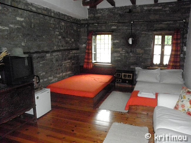 An diesem Wochenende ist im Dorf richtig was los: Nicht nur eine Walachenhochzeit, wie man den Schüssen aus dem unteren Teil des Dorfes entnehmen kann (wie auf Kreta!), sondern auch Langstreckenläufe durch die Berge. Unglaublich fit seien die Sportler, Muskeln wie Bretter hätten Sie. 50 Kilometer hätte der Sieger der ersten Etappe in knapp 4 Stunden zurückgelegt. Und die Läufe durch die Bergwelt sind ja bei diesen Steigungen nicht ohne. Unsere Gelüste sind anderer Natur: Aus dem benachbarten Café-Restaurant Astráki des deutschsprachigen Wirtes Bábis duftet es mittlerweile so einladend, das wir nicht mehr widerstehen können. Kontosoúvli gibt es, verschiedene gegrillte Schweinefleischstücke (vom Nacken und Bauch) am Spieß, herrlich knusprig und aromatisch gewürzt. Dazu cremigen Tsatsíki und frischen Choriátiki. Als Aperitif erhalten wir selbst gebrauten Tsípouro aus Moscháto-Trauben, aus denen auch der schwere Samos-Wein gekeltert wird. Als wir uns schließlich kugelrund gegessen haben (ein Glück, dass wir nicht in den Bergen herumrennen müssen!), ist das Open-Air-Lokal bis auf den letzten Platz gefüllt. Es sind also doch einige Touristen hier vor Ort, auch kleinere, gemütliche Gruppen, die auch nicht durch die Berge laufen. Mittlerweile dreht sich schon der zweite Kontosoúvli-Spieß, und beide – Vater und Sohn (letzterer mit einer Ausbildung zum Koch) - flitzen zwischen Essens-Terrasse und Innenraum hin und her, schleppen Getränke, Salate und alles, was die Taverne so hergibt, und finden in dem Stress zwischendurch immer noch ein paar freundliche Worte zu den Gästen. Fragt der Sohn einen älteren Mann am Nachbartisch: „Soll ich dir noch ein Bier bringen?“ – Der Gast: „Nein.“ – „Ich spendiere es dir.“ – „Auch wenn mir deine Tante ein Bier spendiert – ich will nicht!“ – Zwei Minuten später steht ein frisch gezapftes Bier vor dem Gast. Dieser lächelt, nimmt das Glas und trinkt mit verschmitztem Gesicht. Bald sind wir rechtschaffen müde, vielleicht auch wegen des anderen Klimas hier in der Höhe. In der Nacht schlafen wir bei offenem Fenster, ohne Klimaanlage und ohne Moskitos fantastisch. Selbst die Hochzeit kann uns nicht wecken. Bis in den Morgen sollen die Gäste getanzt haben. Am darauffolgenden Tag hört man am Vormittag schon wieder Musik – das Fest geht in seine zweite Runde.