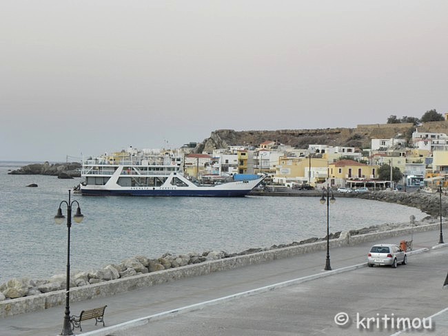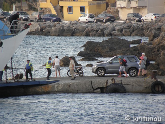 ![]() Die Besatzung der Samaria I hat schließlich ihren Dienst aufgenommen und das Schiff so gedreht, dass die geöffnete Vorderklappe auf dem Pier liegt. Wenige Schluchtenwanderer haben sich eingefunden und warten ungeduldig auf die Abfahrt. Besser am frühen Morgen als in der Gluthitze durch die Klamm zu marschieren, werden sie sich denken. Das Beladen dauert nicht lange, und im Nullkommanichts legt die Fähre ab, wendet und eilt in Richtung Soúghia und Samariá-Schlucht davon.