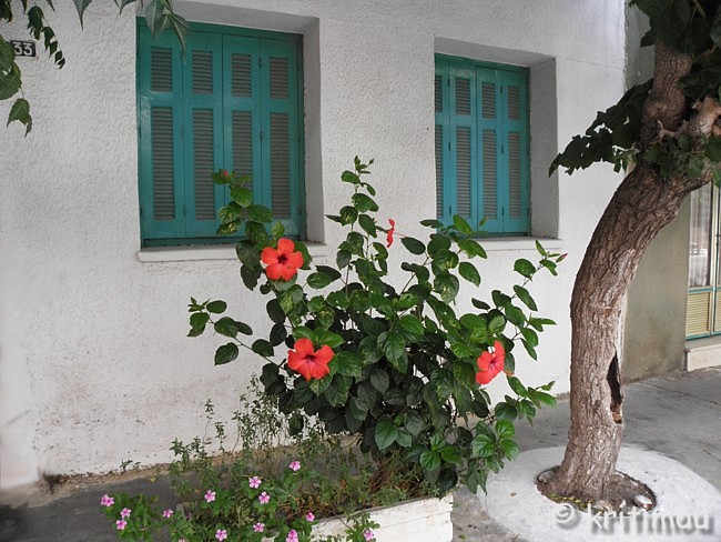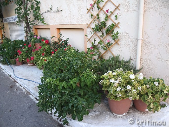 ![]() Die Luftfeuchtigkeit, die gestern in riesigen Wolkenungetümen über den Bergen hing, hatte uns hier zum Glück nicht erreicht. Hoffen wir, dass es so bleibt. Auf ihrer täglichen Wanderung steht die Sonne mittlerweile schon recht hoch. Für mich ist dagegen die Zeit gekommen, mich wieder hinzulegen und ein Morgenschläfchen einzulegen. Am späten Vormittag gönnen wir uns im benachbarten Café an der Promenade einen weiteren Kaffee. Alex liest aus der „Chaniótika Néa“ vor. Eine Untersuchung von Trivago.gr für Buchungen zwischen dem 1. März und dem 1. August der Jahre 2015 und 2016 hat zu folgendem Ergebnis geführt: Vom 1. bis 31. Juli 2016 gab es in Iráklio 667.330 Personenankünfte. Davon waren 125.326 Deutsche, 83.193 Briten, 63.171 Russen, 60.498 Franzosen. Zufriedenstellend wurden die Besuche aus den Niederlanden, Polen und Israel bewertet, wobei die Anzahl der israelischen Gäste zugenommen hat und die der Besucher aus Skandinavien unverändert ist. Bei den griechischen Besuchern standen im Jahr 2015 Chalkidikí, Thássos und Levkáda an erster, Santorin an fünfter und Naxos an fünfzehnter Stelle. Kretische Ziele findet man in dieser Aufstellung nicht. Im Jahr 2016 standen Chánia und Párga zuoberst, Naxos an dritter, Réthimno an zehnter, Mykonos, Paros und Ios kamen nicht mehr vor. Gerade bei jungen Leuten waren die zuletzt genannten Inseln sehr beliebt, aber das Club- und Partyleben hat seinen Preis, allen voran auf Mykonos. Man könnte daraus schließen, dass man sich einen Urlaub dort nicht mehr leisten kann, vielleicht hat der Wechsel der beliebtesten Destinationen aber auch ganz andere Ursachen. Laut der Zeitung sind es heute in Nordkreta 32 Grad, bei uns im Süden ist es dagegen so heiß, dass man eigentlich den ganzen Tag im Schatten verbringen und kalte Getränke in sich hineinschütten möchte. Jeder Windhauch ist willkommen. Die Kleidung klebt nicht, weil man so schwitzt, sondern wegen der mittlerweile hohen, salzhaltigen Luftfeuchtigkeit, sodass ein glitschiger Film auf der Haut pappt. Im Café kann man es einigermaßen aushalten, wenn auch die Sonne erbarmungslos auf die dicken Schirme knallt. Die Wasseroberfläche des Meeres sieht sogar leicht bewegt aus. Käme doch nur ein wenig spürbarer Wind auf! Auch mit einer leichten Brise würden wir uns schon zufrieden geben. Wie eine Glocke hängt die Hitze über uns, lähmend, auch im Kopf. Und doch entschließen wir uns zu einem kleinen Dorfbummel. Paleοchóra bedeutet „alte Hauptstadt“ oder „alter Hauptort“. Woher der Name kommt, ist nicht gewiss. Das Städtchen erstreckt sich über eine Landzunge, gekrönt von den Überresten einer venezianischen Befestigungsburg aus dem 13. Jahrhundert. Die geografische Abgeschiedenheit und diese Lage auf einer Landzunge waren vielleicht die Hauptsgründe, warum es in den 1960er und 1970er Jahren so viele junge Reisende in das verschlafene Fischerdorf zog. Nur noch wenige von ihnen sind übrig geblieben. Einige leben in den Dörfern der Umgebung und versuchen finanziell über die Runden zu kommen. Die neu Hinzugezogenen kamen allerdings mit sehr viel Geld, eroberten die Randbezirke, kauften Häuser und bauten Paläste in der Peripherie. Mit ihrem Geld weckten sie Begehrlichkeiten und Neid. Daneben hat auch die unausweichliche touristische Entwicklung zur Kommerzialisierung beigetragen: Hotels, Rooms, Studios, Tavernen, Schnickschnack-Läden mit touristischem Klimbim prägen das Ortsbild. Am Abend dann die Straßenverkäufer und Musiker mit mobiler Anlage. Jeder kämpft für sich, die einen ums Überleben, die anderen um ein wenig Wohlstand im krisengeschüttelten Land. Von der früheren Stimmung ist nicht mehr viel übrig, es ist wie überall. Unser Spaziergang führt uns zunächst zum Hafen, von wo wir über eine Stichstraße hinüber in den Ortskern schwenken. Die kleinen Gässchen wirken sehr gemütlich, an vielen Ecken gibt es hübsche Arrangements zu knipsen.