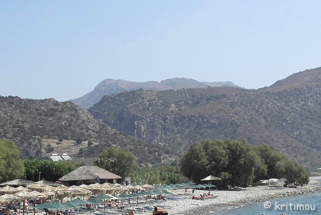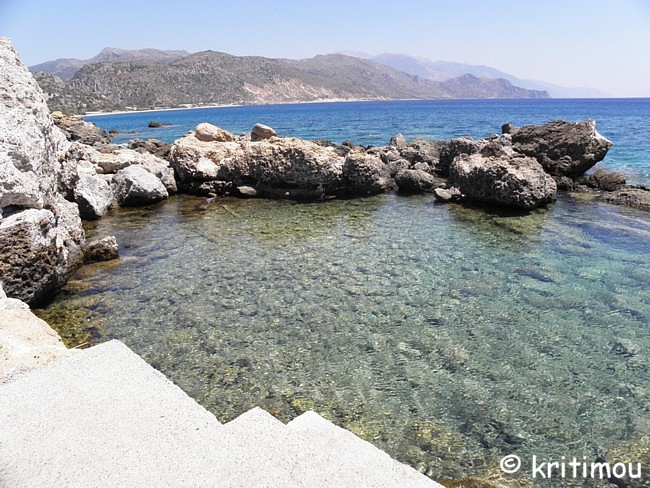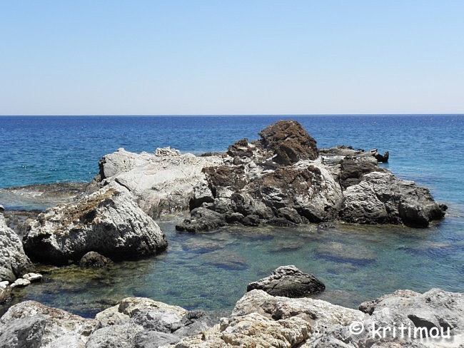 ![]() Auf dem Weg zurück passieren wir das einzige, in dieser Straße nicht hergerichtete und offenbar leerstehende Haus, dem irgendjemand ein wenig Vegetation verschafft hat, um die schlimmsten Verfallsspuren zu verstecken. ![]() Unser nächstes Ziel ist der weite Sandstrand, Pachiá Ammos. Selbst zum Baden ist es uns heute zu heiß im Gegensatz zu denen, die sich auf den unzähligen Liegestühlen unter den Sonnenschirmen tummeln. Lieber kehren wir in einem der Cafés ein. Bis der frisch gepresste O-Saft auf unserem Tisch landet, hat er allerdings schon lauwarme Temperaturen angenommen. Ein paar abgerissene Gestalten hängen hier herum, wer weiß wie lange schon. Auf jeden Fall niemand, mit dem ich ins Gespräch kommen möchte, wegen bereits eingetretener Trunkenheit schon am frühen Mittag. Ansonsten weit und breit schwitzende Touris. Nicht lange halten wir es aus, die Luft „steht“ förmlich. An einem anderen Tag wird uns der Wind an dieser Stelle fast wegwehen. Wind ist einfach eine herrlich erfrischende Abwechslung - würde er auch heute nur ein wenig wehen! Zurück geht es zur Ostseite der Halbinsel, entlang der Fahrstraße. Kleine Naturbecken laden hier zum Baden ein. Nur wenige Sonnenschirme passen in eine felsige Bucht.