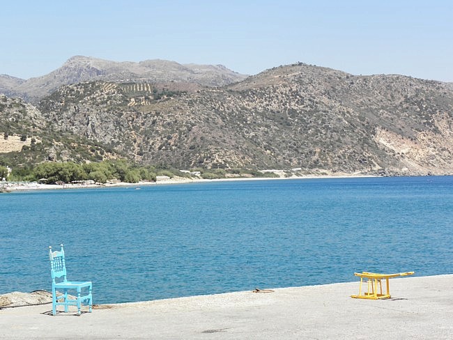 ![]() Auch Schnorchelfans kommen bei den Felsen auf ihre Kosten, wie wir erfahren. Gemütlich ist es hier zu dieser Tageszeit, kein Vergleich zu den überlaufenen Stränden an der Nordküste Kretas. Eine weitere Erfrischung muss jetzt her. Das Café Amyrída schaut von der Straße her sehr eigenwillig aus mit der Tamariske, die mitten durch das Gebäude wächst. In ihrem Schatten lässt es sich bei der Hitze gut aushalten. ![]() Danach schlendern wir wieder zum kleinen Hafen, wo jetzt eine leichte Brise aufgekommen ist – Grund für uns, hier in einem der Cafés zu verweilen und das Geschehen zu beobachten. Die Musik aus den Lautsprechern lädt zum Chillen ein, ein bisschen was Futuristisches, aber kein Gedröhne. Das in Sichtweite gelegene Touristenbüro mit dem freundlichen mehrsprachigen Manager, ist wie immer gut besucht. Gäste treffen ein, schnell ist unser Lokal voll besetzt und hallt von Gesprächsfetzen in verschiedenen Sprachen wider. Der Blick hinaus auf den Pier. Gerne parkt man hier direkt unter dem Schild im absoluten Halteverbot. Doch was in diesem Leben ist schon absolut? Zwei bunte Stühle ohne Sitzflächen dienen als Platzhalter für die einheimischen KFZ - ein täglich neu erfundenes Stillleben. ![]() Dieser Ort ist ein regelrechter Verkehrsknoten. Einheimische knattern auf ihren Mopeds vorbei, die Transportgüter vorne auf dem Lenker balancierend oder huckepack festgezurrt. Eine Palette mit eingeschweißten Wasserflaschen wird auf einem Quad transportiert. Ein gestenreich telefonierender Pickup-Fahrer quert und biegt ab in den Ort. Der behelmte Vespa-Fahrer, der ihm entgegenkommt, wird gegrüßt. Man kennt sich in dem kleinen Städtchen und der Umgebung. Auffallend viele Leute auf Fahrrädern sind unterwegs, immer noch das preiswerteste Fortbewegungsmittel. Protzautos gibt es eher weniger. Schräg gegenüber werden Steinplatten für die Hausrenovierung zersägt, wo unter den Räumen im ersten Stock die letzte Lücke wahrscheinlich mit einer Esswerkstatt geschlossen wird. Direkt daneben befindet sich bereits – neben dem lauten Kinderparadies – ein Pizza-Restaurant, das jeden Abend proppevoll ist. Bis zum Steinstrand schließen sich dann noch jede Menge Esstempel und wenige Cafés an, auch diese sind im Hochsommer jeden Abend sehr gut besucht. Zwei griechische Jungs betreten das Hafencafé, beide mit lustigen Schriftzügen auf dem Shirt wie „Sixpack coming soon“. Da wird er noch ein wenig Training benötigen. Eine Frau mit sehr aufrechter Haltung passiert das Café, in Gegenrichtung ein Papa mit seinem kleinen Sohn, jeder mit Angelrute. Hinsichtlich der bevorstehenden Angelei werden sie von Einheimischen beraten. ![]() Ein Mann vom benachbarten Lokal besteigt ein Moped, um eine Riesentüte Müll zum etwa 20 Meter entfernt stehenden Müllcontainer zu bringen. Ein Cosmote-Auto quert von rechts mit Leitern auf dem Dach. Eine Wölkchen-Parade schiebt sich quer über den azurnen Himmel; im Westen quillt bereits ein veritables Wolken-Gebirge empor. Regen im August? Letztes Jahr habe es im August auch schon geregnet, verrückt, meint unser Zimmerwirt. Wir hätten nichts dagegen. Zwischendurch wabert immer mal wieder ein süßlicher Kuchenduft aus dem Nachbar-Café herüber. Gebeugte Gestalten, die manchmal vorbeischleichen, mit neugierigen Blicken, verschlossen, nicht Teil dieser lebendigen Hafenszenerie. Ein älterer Mann knattert rauchend im Schritttempo vorbei. Immer findet sich jemand, den man kennt, der ruft und grüßt. Kleinstädtischer Alltag halt. Pfeifen, johlen, rufen, das Knattern wiederholt sich, in umgekehrter Richtung dieses Mal. Ein weiteres Moped mit einhändig lenkendem Fahrer, die andere Hand in die Hüfte gestützt. Ein weiterer, mit einem großen Paket unter dem Arm, fährt von Café zu Café, grüßt dort befindliche Frappé-Trinker, tauscht ein paar Worte mit den Bekannten, dann fährt er ein paar Schritte weiter, Wiederholung des Procedere. Dann fährt doch einmal ein schwarzes, großes Angeber-Auto mit griechischem Nummernschild vorbei, ein Girl hinter dem Steuer, das gerade einmal so alt ist, dass es über den Lenker schauen kann. Das ist aber die einzige, die uns auffällt. Ansonsten tritt man eher bescheiden auf. Behütete Touris und solche mit Wanderstöcken verdienen unsere Achtung, sie scheuen die kretische Mittagssonne nicht und stapfen tapfer durch die Landschaft, während alle anderen in Cafés sitzen, sich am Strand wälzen oder zu Hause schlafen. Am Nebentisch sitzen zwei Mädchen, eine telefoniert mit jemandem zu Hause in Deutschland und erzählt, das Essen sei gut und die Auswahl reichlich, aber etwas fett. Wir kommen nicht umhin, dem Telefonat zuzuhören, da das Gespräch in einiger Phonstärke geführt wird. Gestern sei man auf Santorini gewesen und heute an einem kretischen Ort, von dem man den Namen nicht weiß. Man sei in einen Bus gestiegen und bis zur Endhaltestelle gefahren. Es sei ganz schön hier, aber etwas heiß. Sie werden vermutlich noch den scharfen Wind, der wie aus dem Nichts aufbrausen kann, verfluchen, auch wenn er zunächst Erfrischung verspricht. Sie werden den Südwind hassen, der die Hautoberfläche in einen glitschigen Film verwandelt und Kopfschmerzen verursacht. Sie werden dieses ganze Schöne und Liebevolle, die Blicke der Einheimischen, die sehr freundliche Erwiderung eines auf Griechisch geäußerten Grußes lieben lernen. Wenn sie es wagen, einen der Hügel der Umgebung zu erklimmen, werden sie den Duft der Natur empfangen, einen unvergesslichen Reichtum an Kräuterdüften, die Gesundheit verheißen und das kretische Essen würzen. So schwärmen wir von der traditionellen kretischen Küche, während nebenan aus einem der Restaurants soeben eine ganze Batterie von leeren Dosen im Abfallbehälter entsorgt wird. Das ist ein bisschen gemein. Kräuter, die die beiden Neuankömmlinge pflücken und im Raum ausbreiten, werden nachts ihr Aroma entfalten, während sie im Traum durch schattige Schluchten und Ber