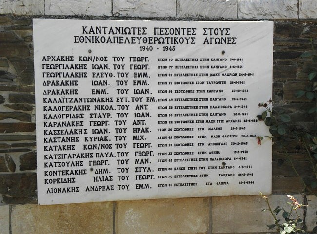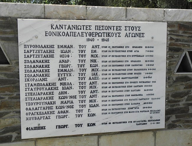 Ein weiteres Denkmal auf der Platía ehrt namentlich aufgelistet diejenigen, die in der Zeit zwischen 1940 und 1945 den Tod fanden, die meisten von ihnen im Jahr 1941.