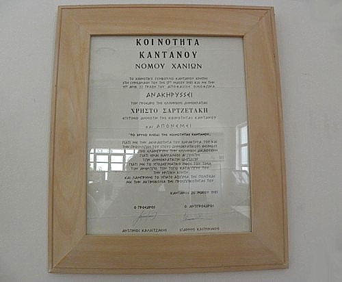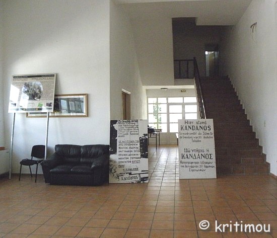 ![]() Das Museum befindet sich im Gemeindehaus, neben der großen Hauptkirche, hoch oben über dem Ort und ist täglich bis 14.30 Uhr geöffnet (Stand 2017). Im Flur des Erdgeschosses hängen an den Wänden interessante Fotos und Dokumentationen. Eine Referenz hat man Ιákobos Koumís erwiesen, geboren in Spína, einem Bergdörfchen in der Nähe von Kándanos. Er war Kapitan und Held in den Schlachten und Aufständen gegen die Osmanischen Besatzer, ganz besonders in jenem des Jahres 1821.