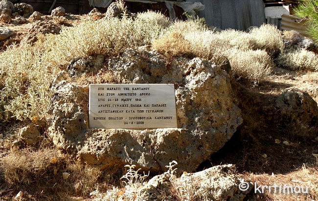 ![]() Historisch sei sie, weil hier am 23. und 24. Mai 1941 die Schlacht gegen die Deutschen stattfand, die zur Zerstörung von Kándanos führte. Dieses Ereignis habe die jüngere Geschichte der Umgebung geprägt. Später, bei der Kapelle Agios Irinäus, entdecken wir auch die erklärende Tafel einer Bürgerinitiative.